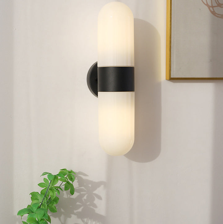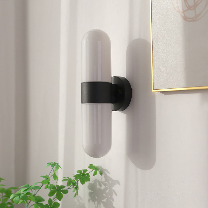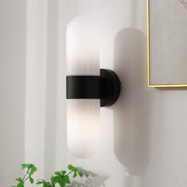 Modern Minimalist Capsule Iron Glass 2-Light Wall Sconce Lamp For Bedroom