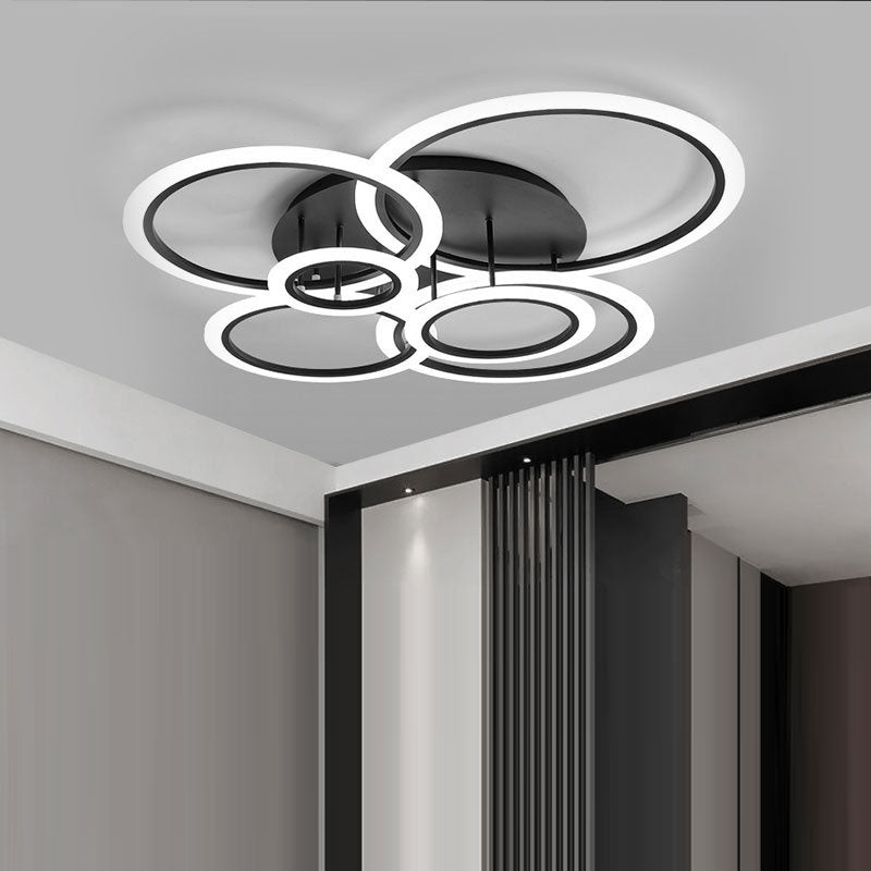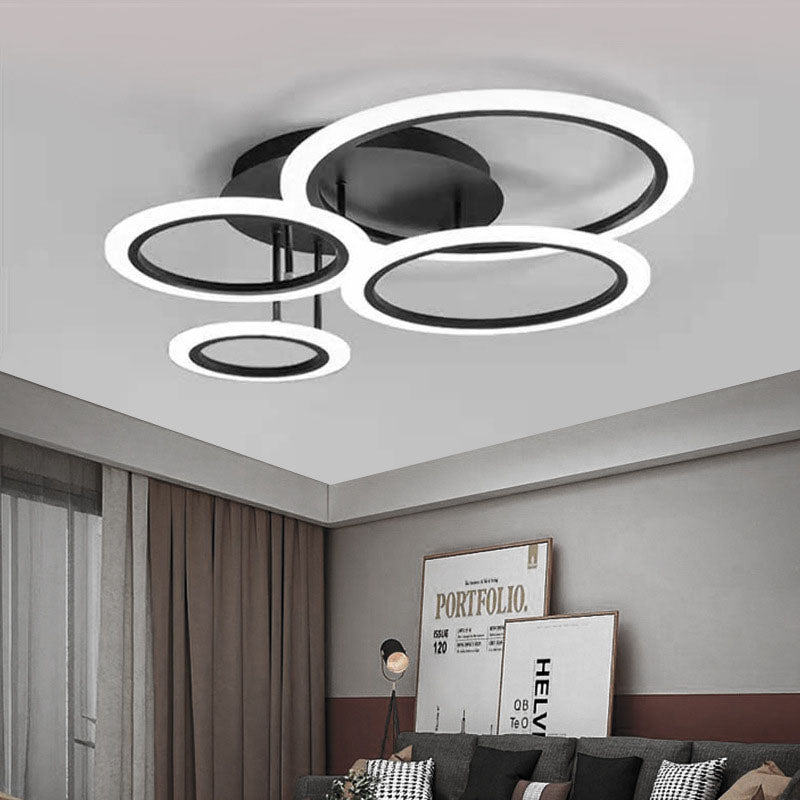 Modern Minimalist Combination Round Circle Hardware Acrylic LED Semi-Flush Mount Ceiling Light For Living Room
