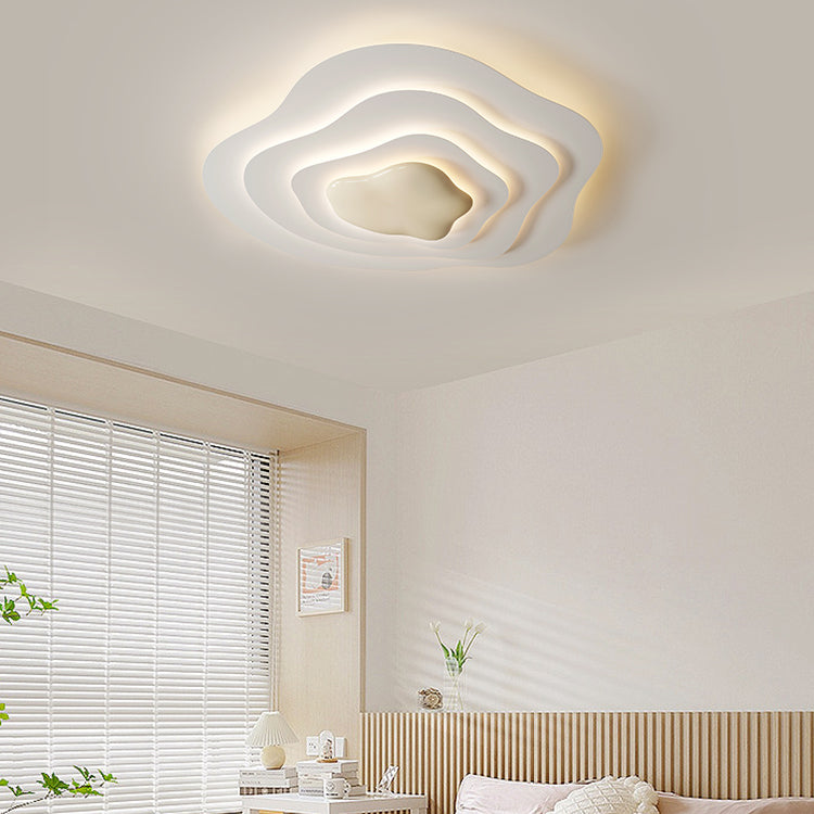Modern Minimalist Cream Cloud Resin Iron LED Flush Mount Ceiling Light For Bedroom