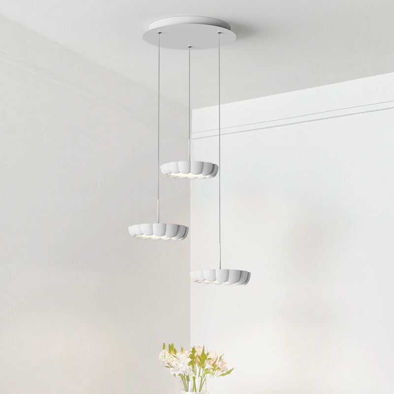 Modern Minimalist Cream Round ABS Iron Lampshade LED Chandeliers For Dining Room