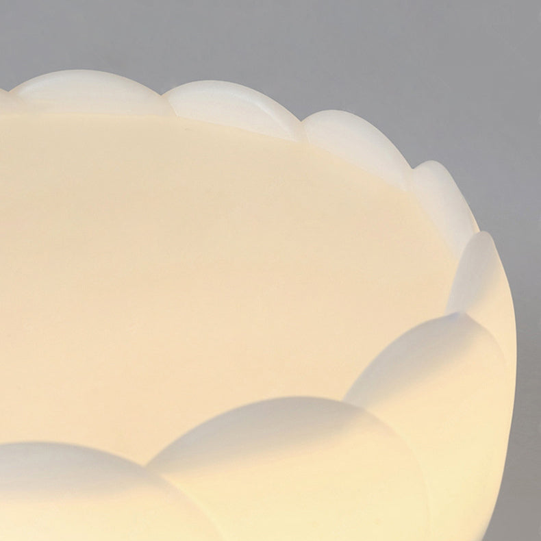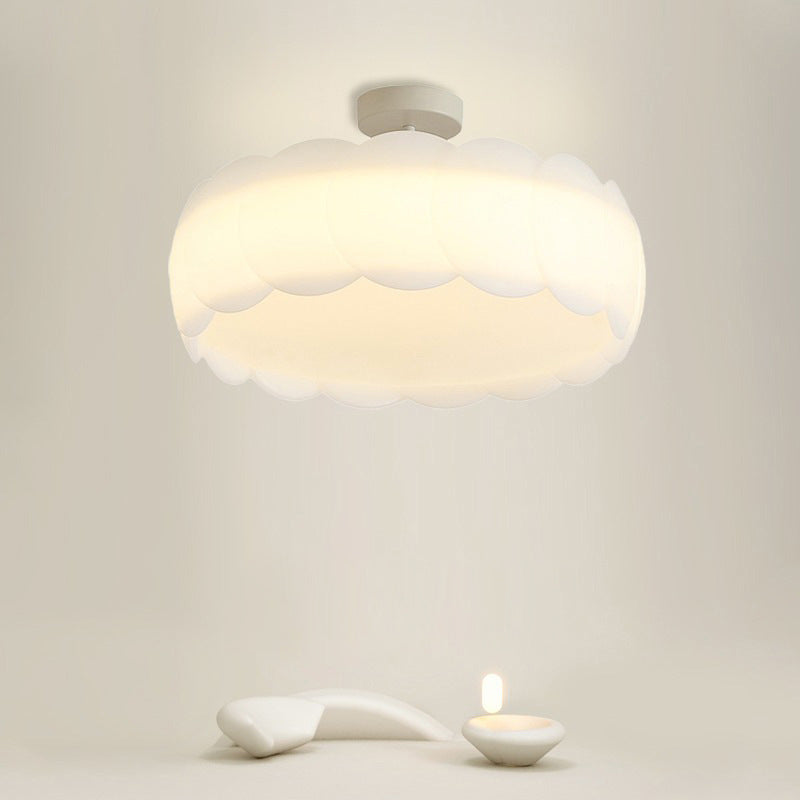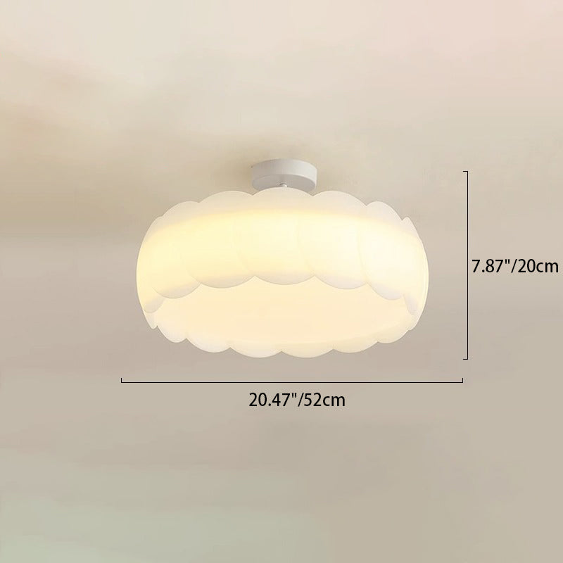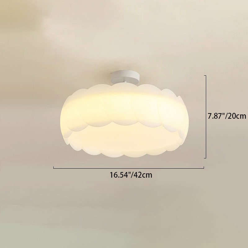 Modern Minimalist Cream Round Lace Hardware PE LED Semi-Flush Mount Ceiling Light For Bedroom