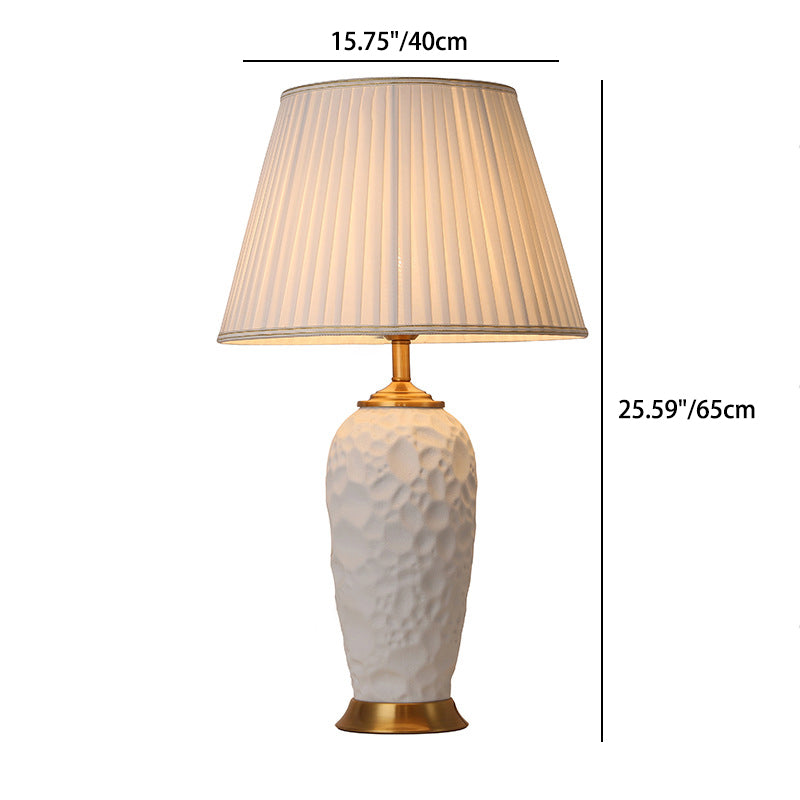 Modern Minimalist Cylinder Ceramic Fabric 1-Light Table Lamp For Bedroom