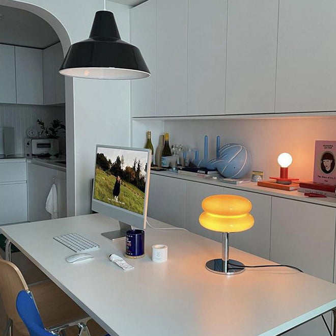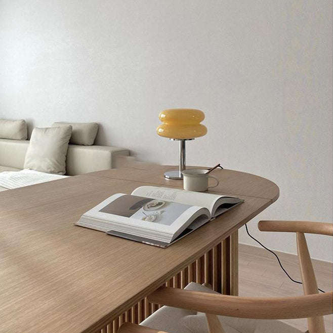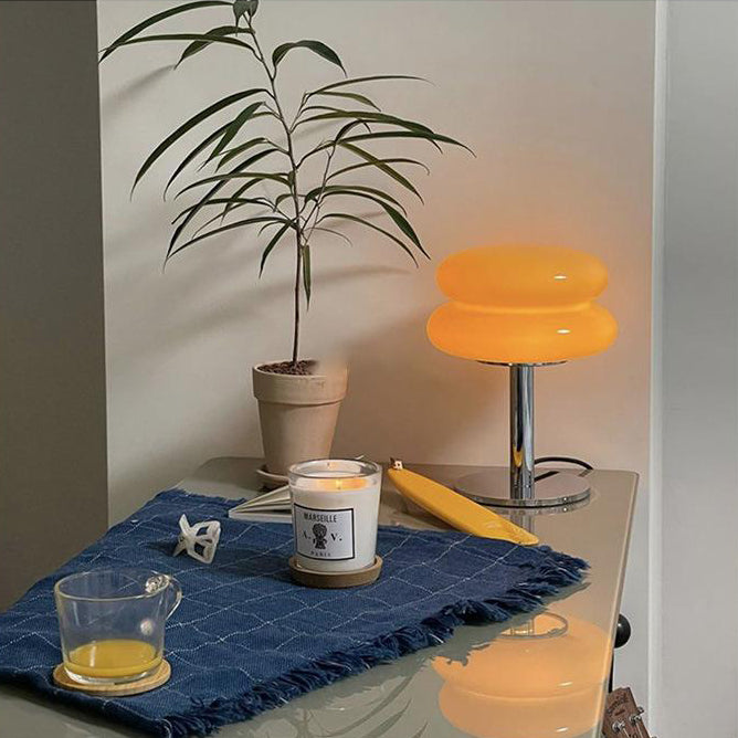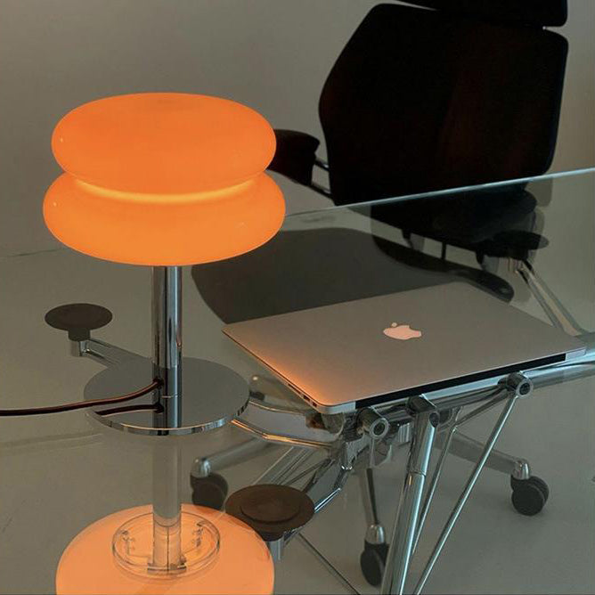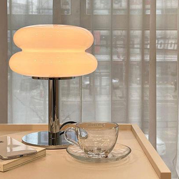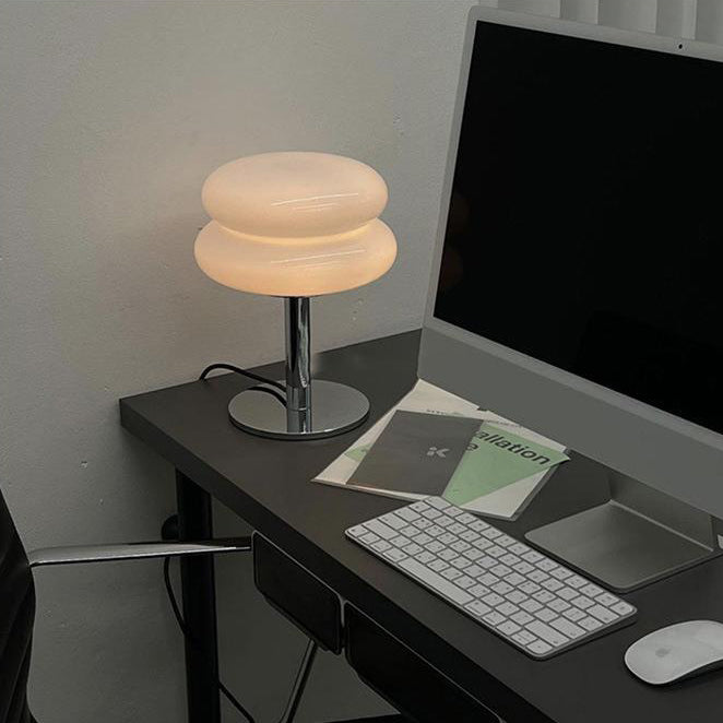 Modern Minimalist Double Layer Cake Shape Glass Iron 1-Light Table Lamp For Bedroom
