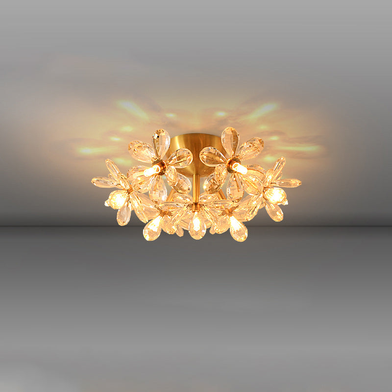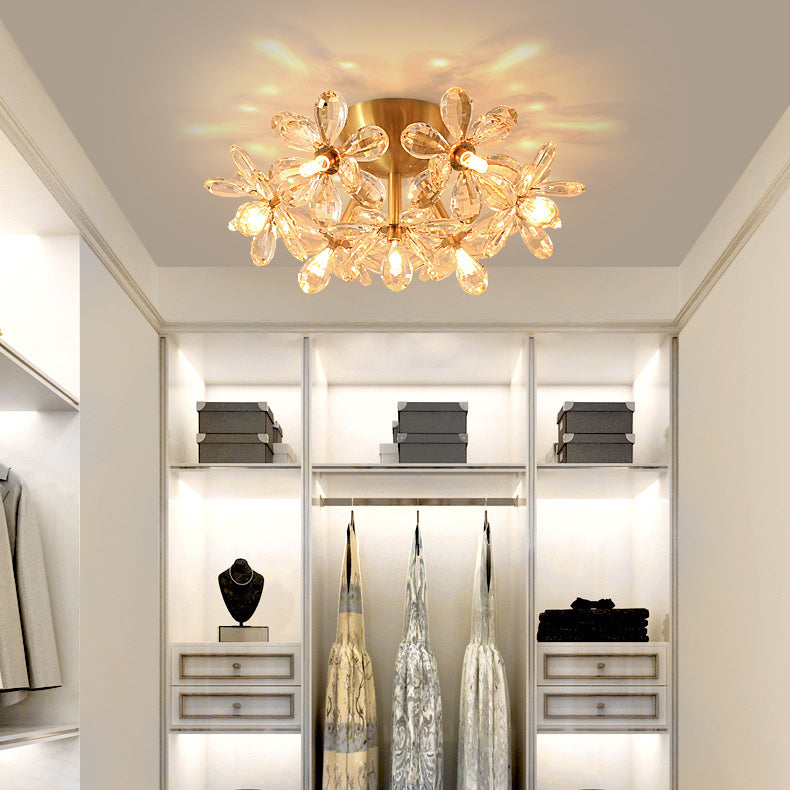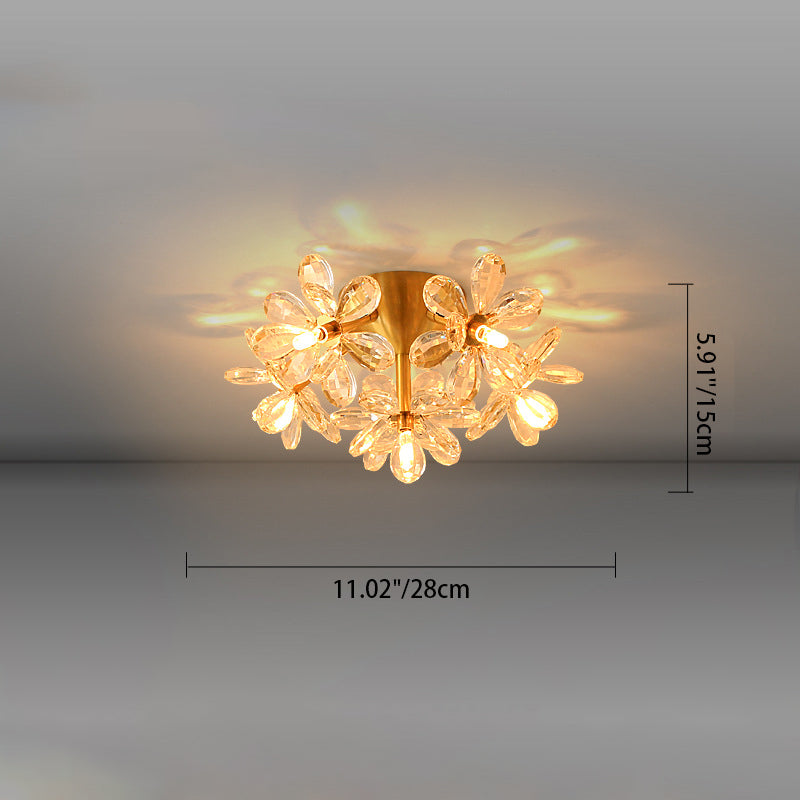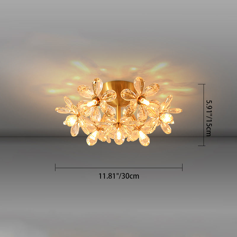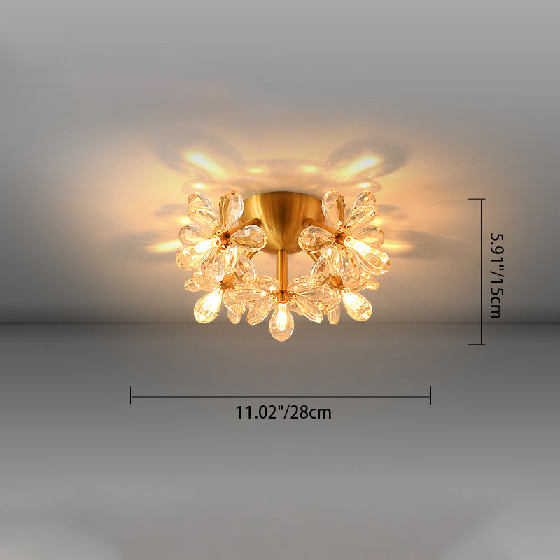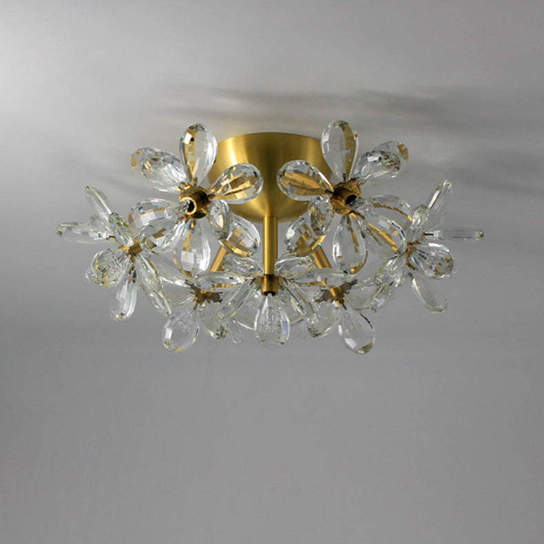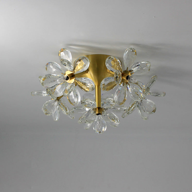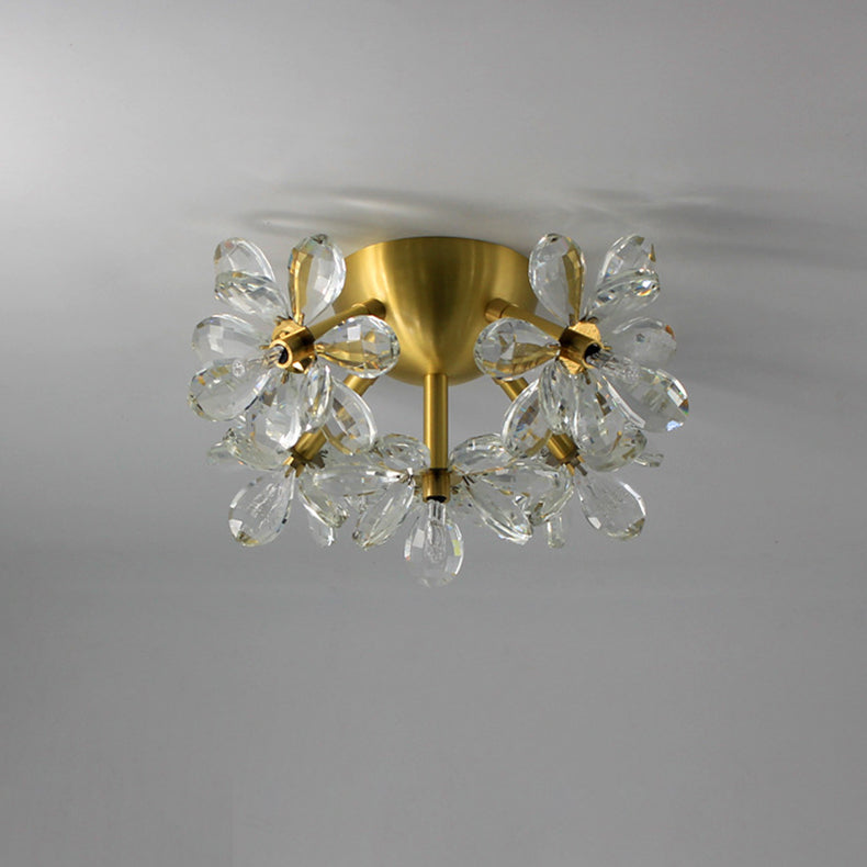 Modern Minimalist Flower Brass Crystal 3/5/6/7 Light Flush Mount Ceiling Light For Living Room