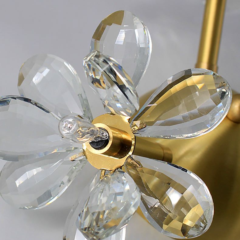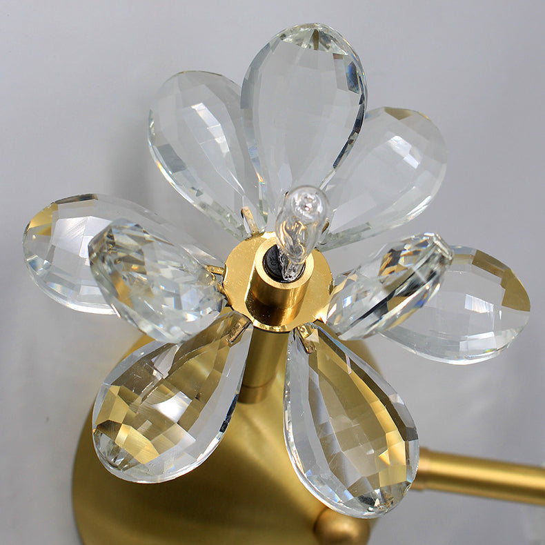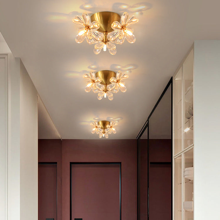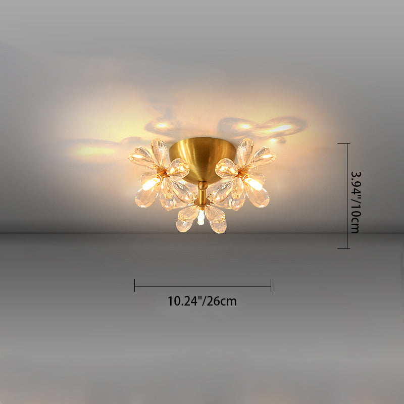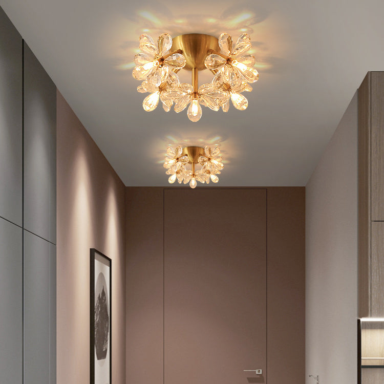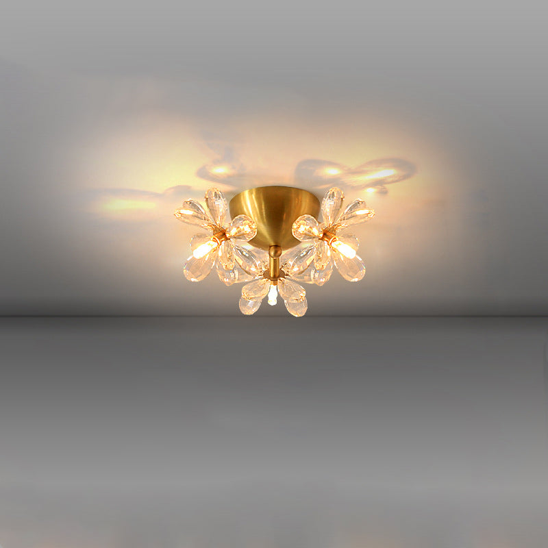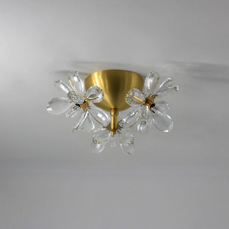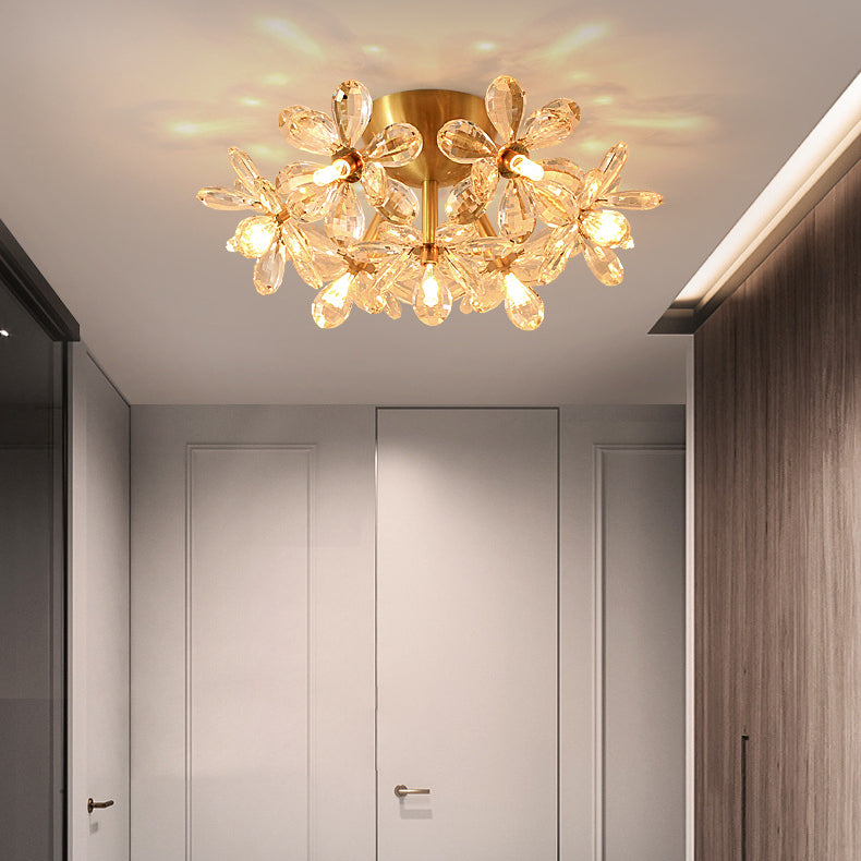 Modern Minimalist Flower Brass Crystal 3/5/6/7 Light Flush Mount Ceiling Light For Living Room