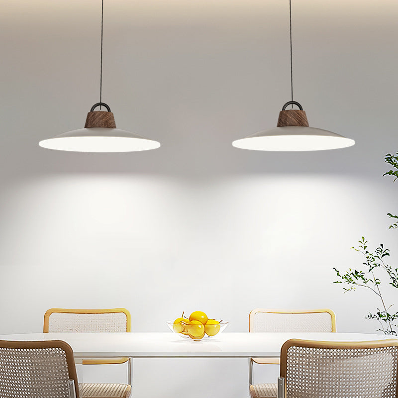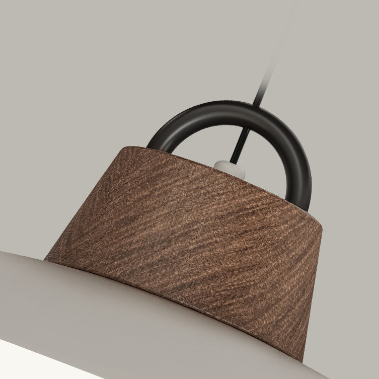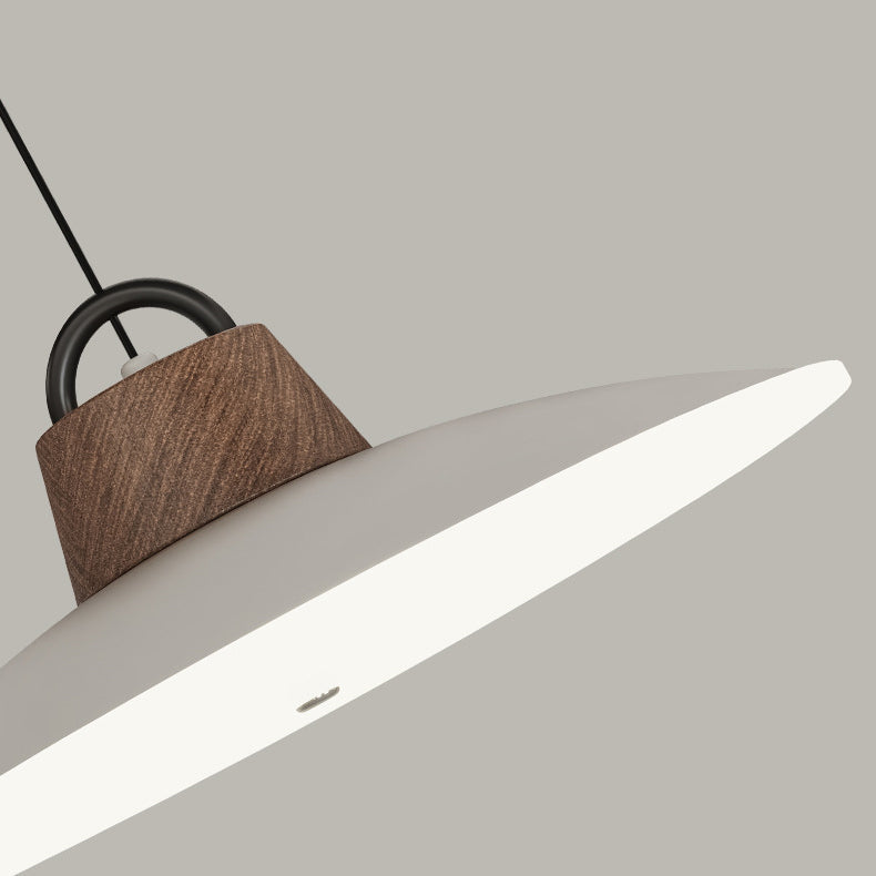 Modern Minimalist Iron, Acrylic & Wood Round Fisherman Hat LED Pendant Light For Bedroom & Living Room