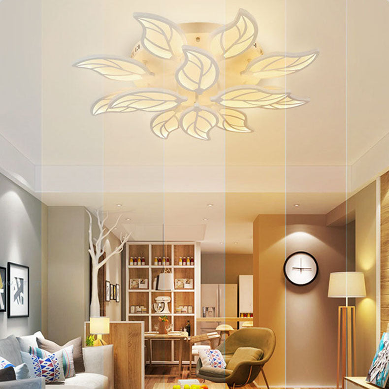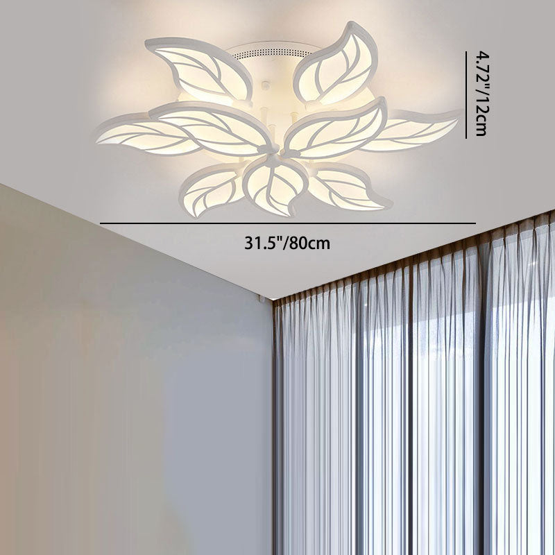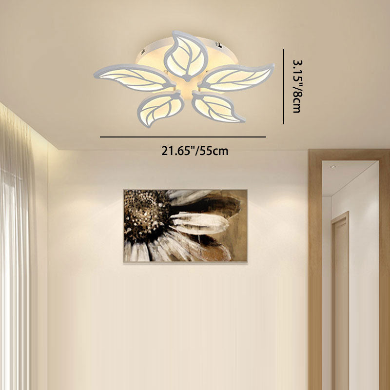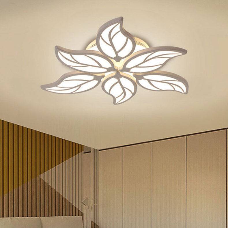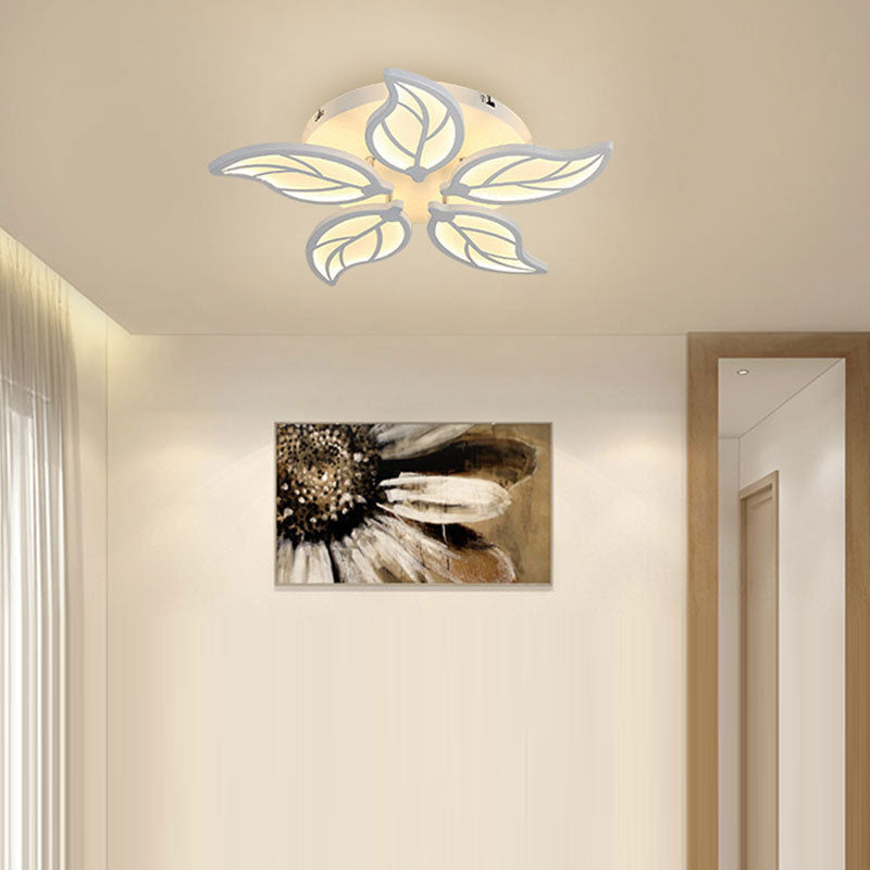 Modern Minimalist Leaf Hardware Acrylic LED Semi-Flush Mount Ceiling Light For Living Room