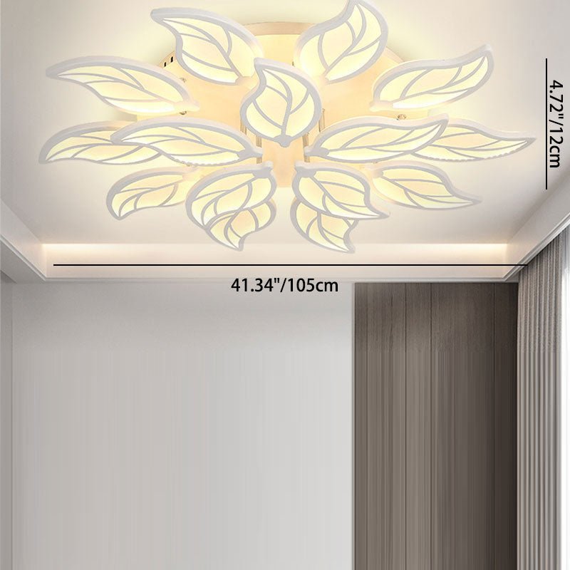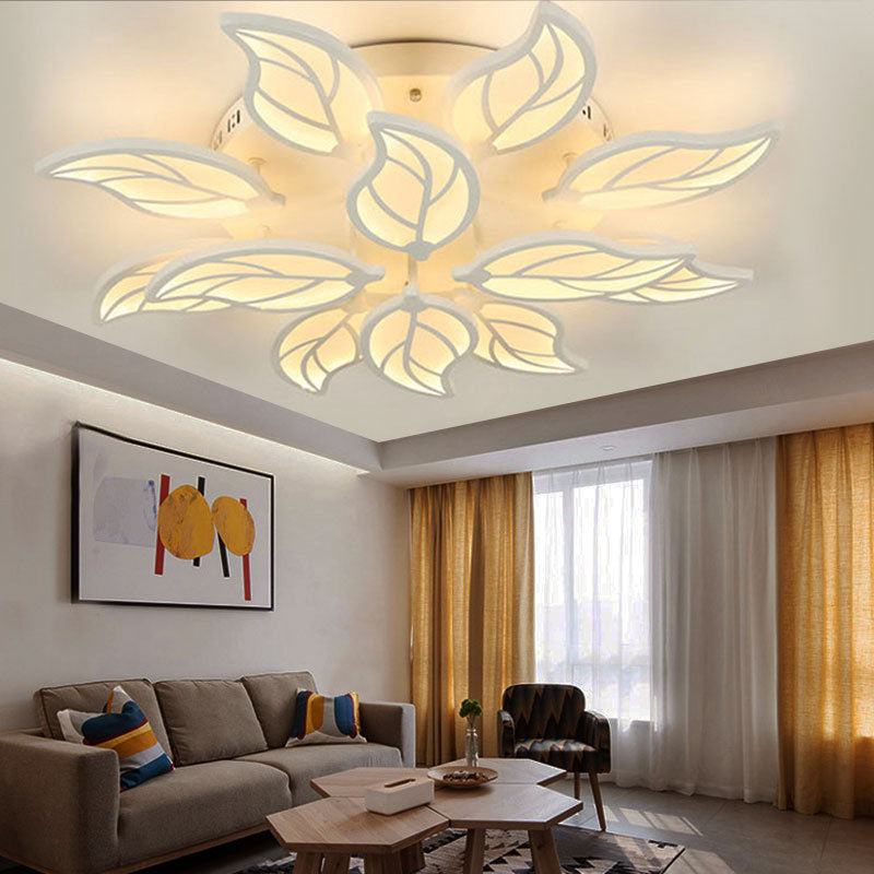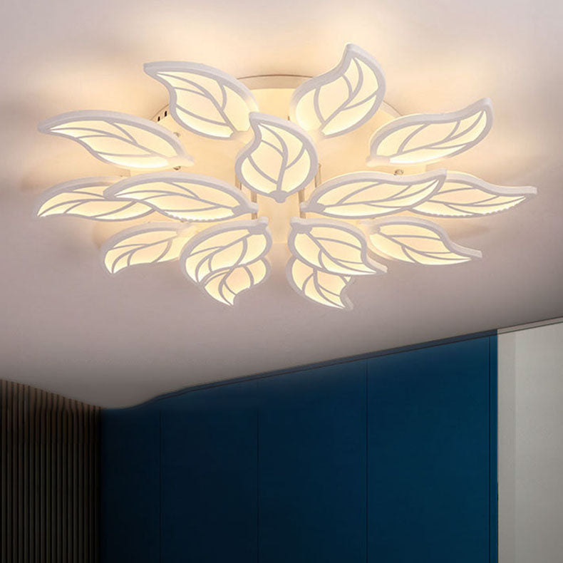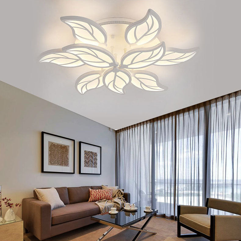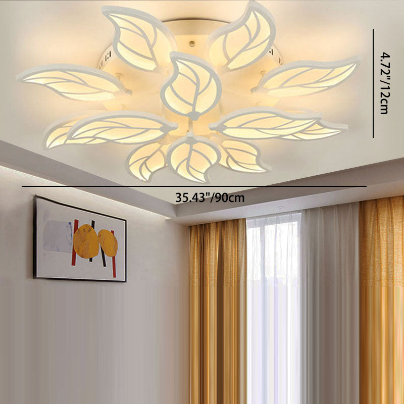 Modern Minimalist Leaf Hardware Acrylic LED Semi-Flush Mount Ceiling Light For Living Room