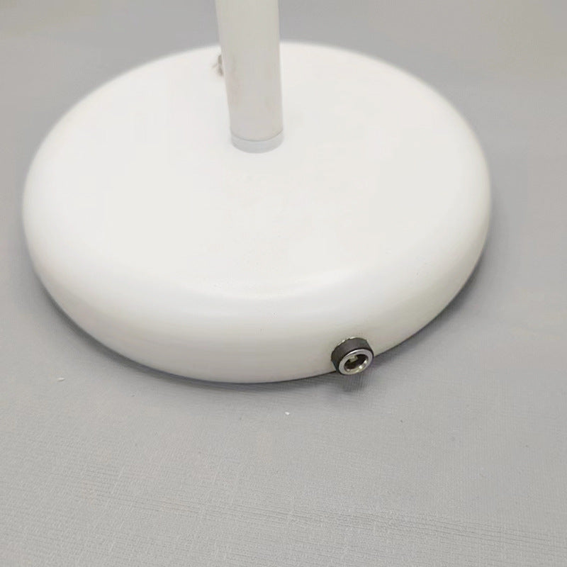 This white iron table lamp features a modern minimalist mushroom-shaped design with built-in rechargeable LED lighting. Perfect for bedrooms and living rooms, it combines convenience with a sleek, sculptural silhouette ideal for nightstands or accent tables.