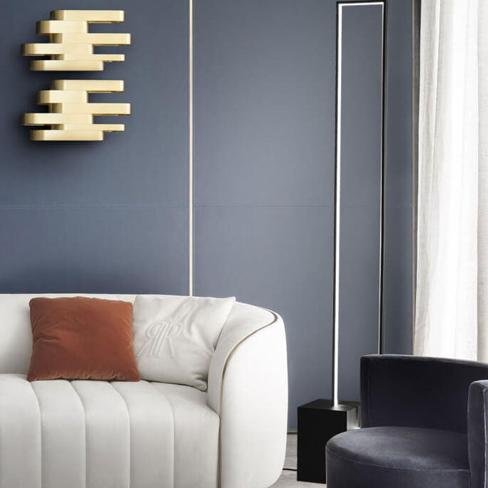 Modern Minimalist Rectangular Line Iron LED Standing Floor Lamp For Living Room