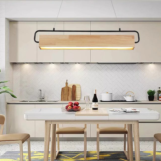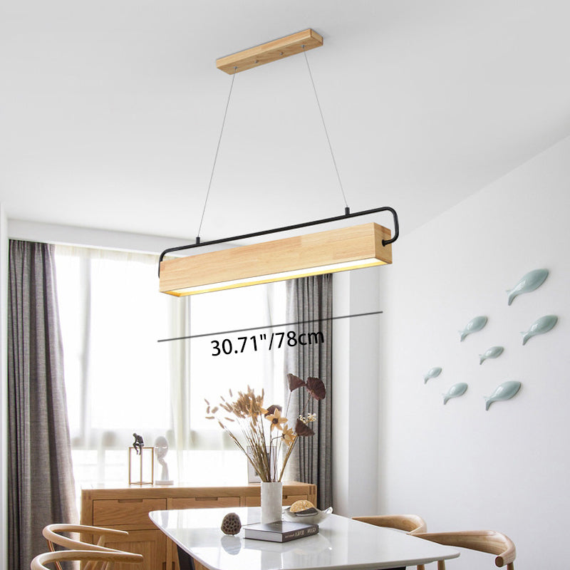 Modern Minimalist Rectangular Wood Acrylic Shade LED Island Light Chandelier For Dining Room