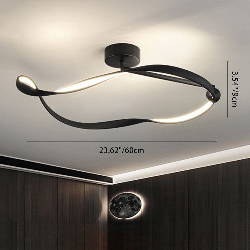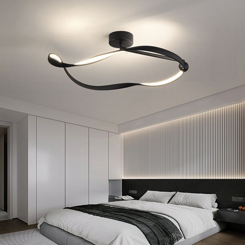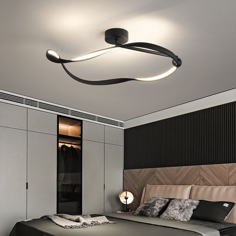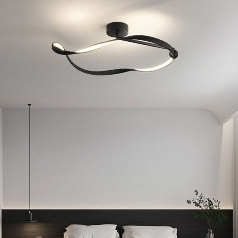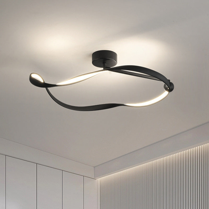 Modern Minimalist Ring Irregular Disc Base Aluminum Iron Acrylic LED Semi-Flush Mount Ceiling Light For Bedroom