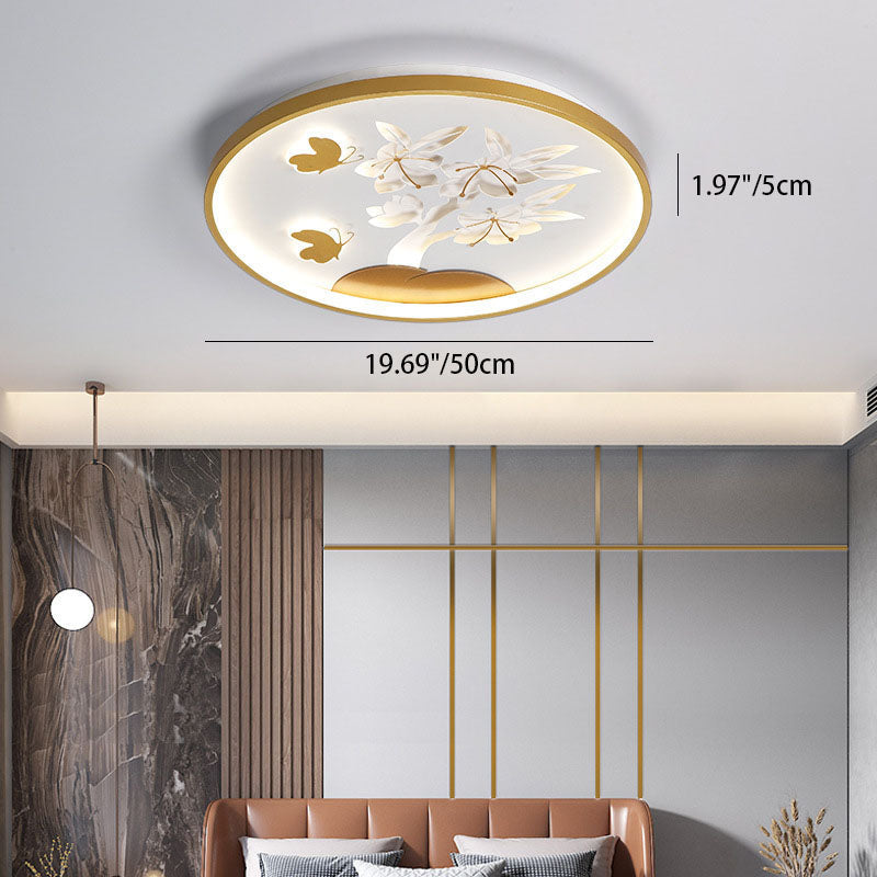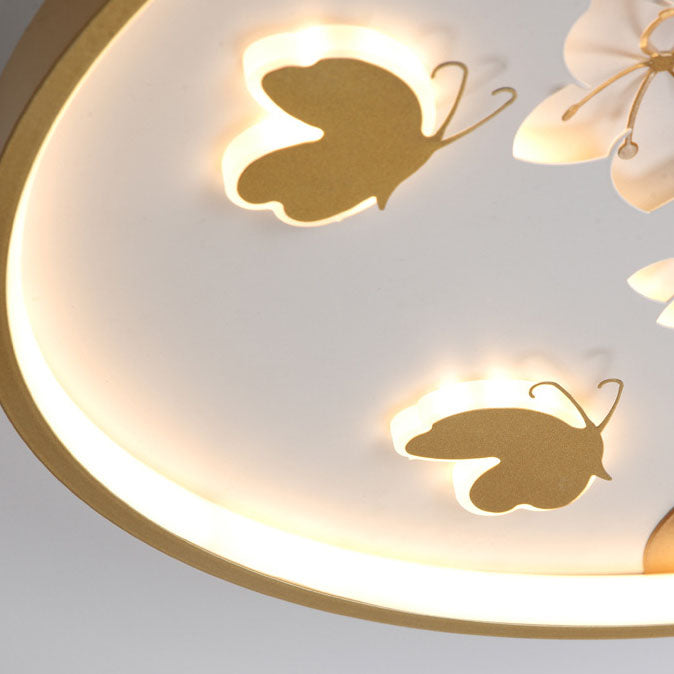 Modern Minimalist Round Butterfly Iron Aluminum Acrylic LED Flush Mount Ceiling Light for Living Room