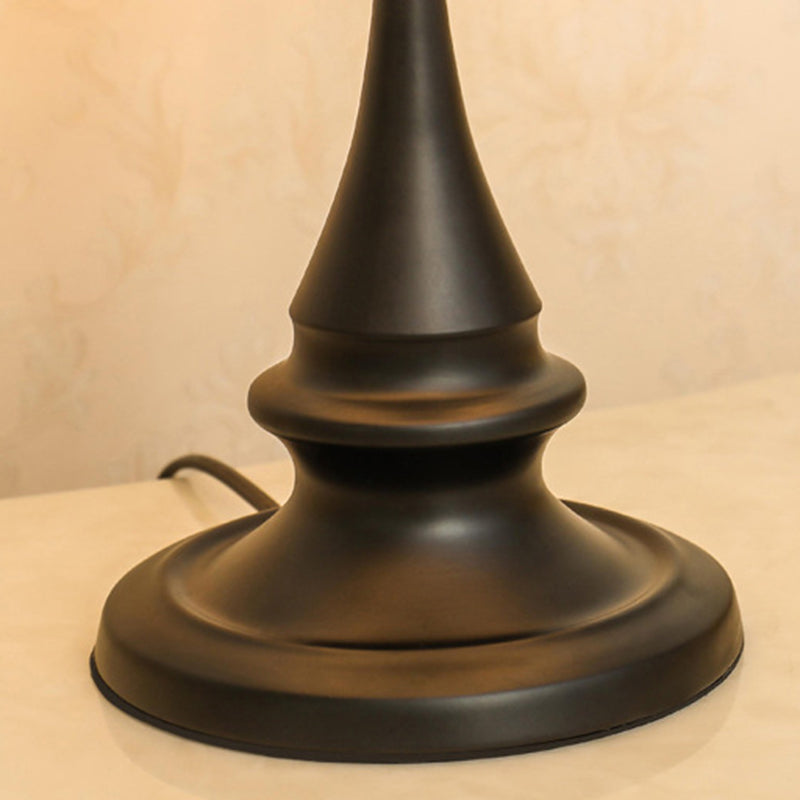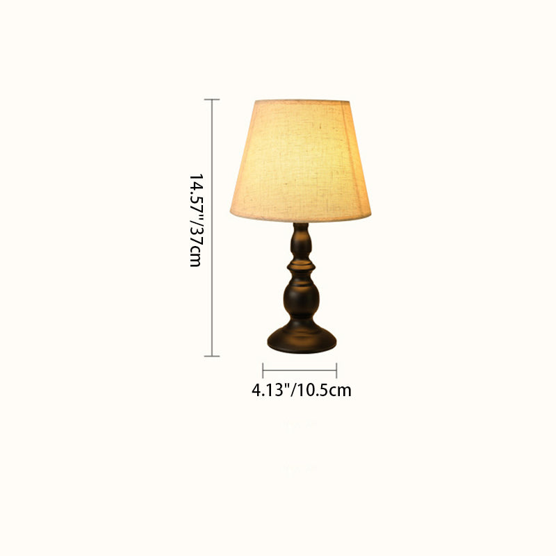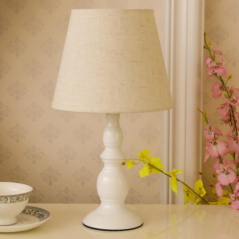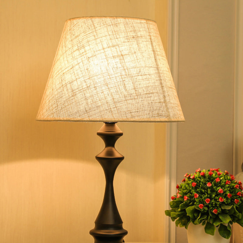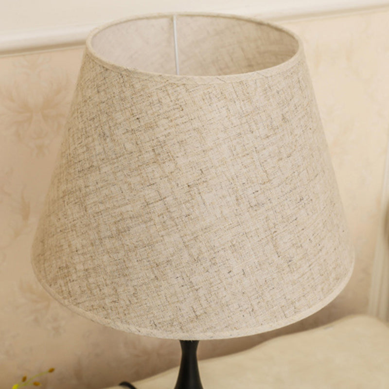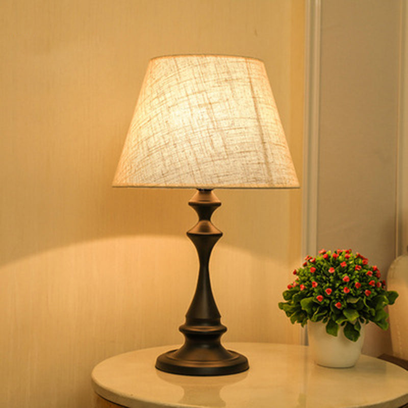 Modern Minimalist Round Cone Iron Base Fabric Shade 1-Light Table Lamp For Bedroom