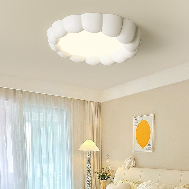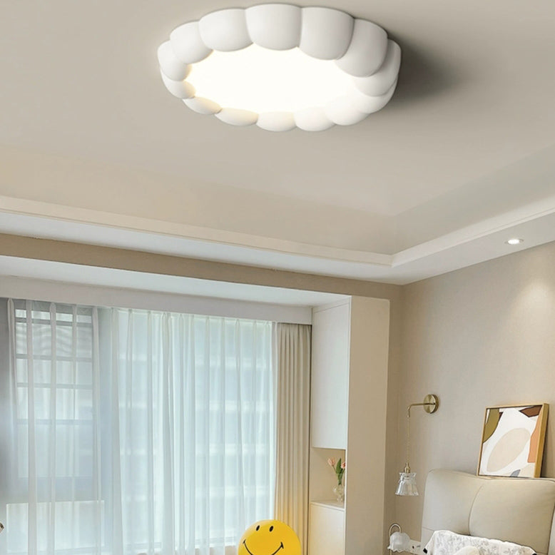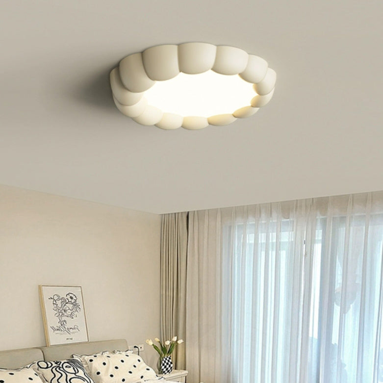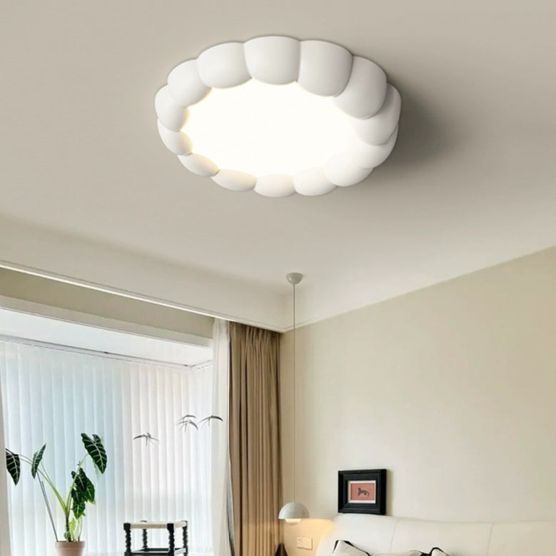 Modern Minimalist Round Cream Bubble ABS Iron LED Flush Mount Ceiling Light For Living Room