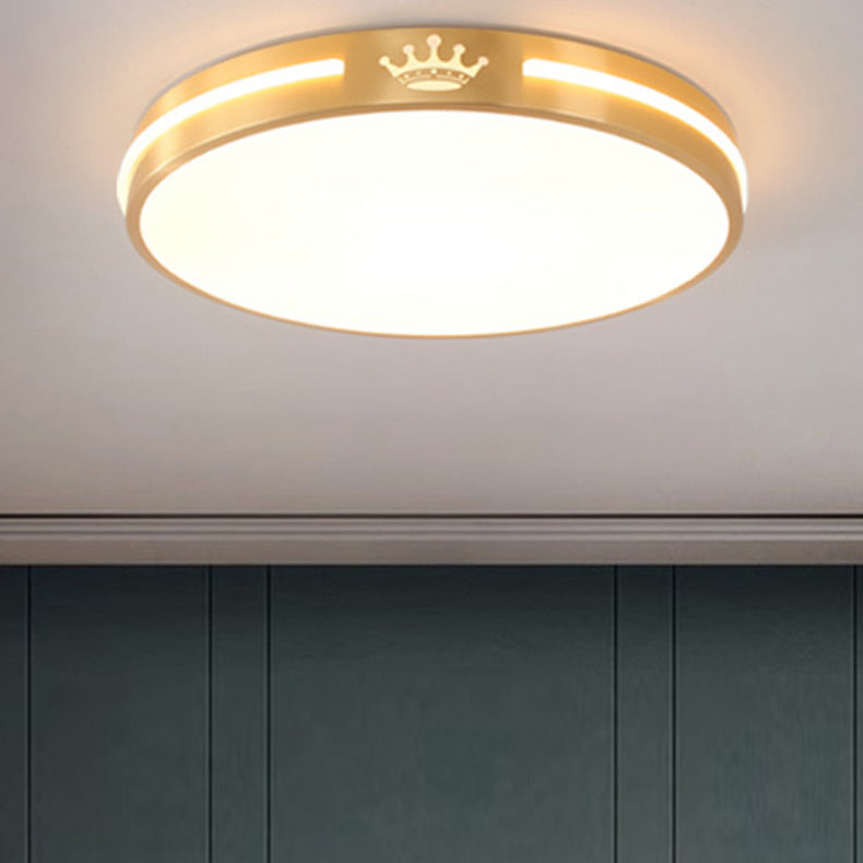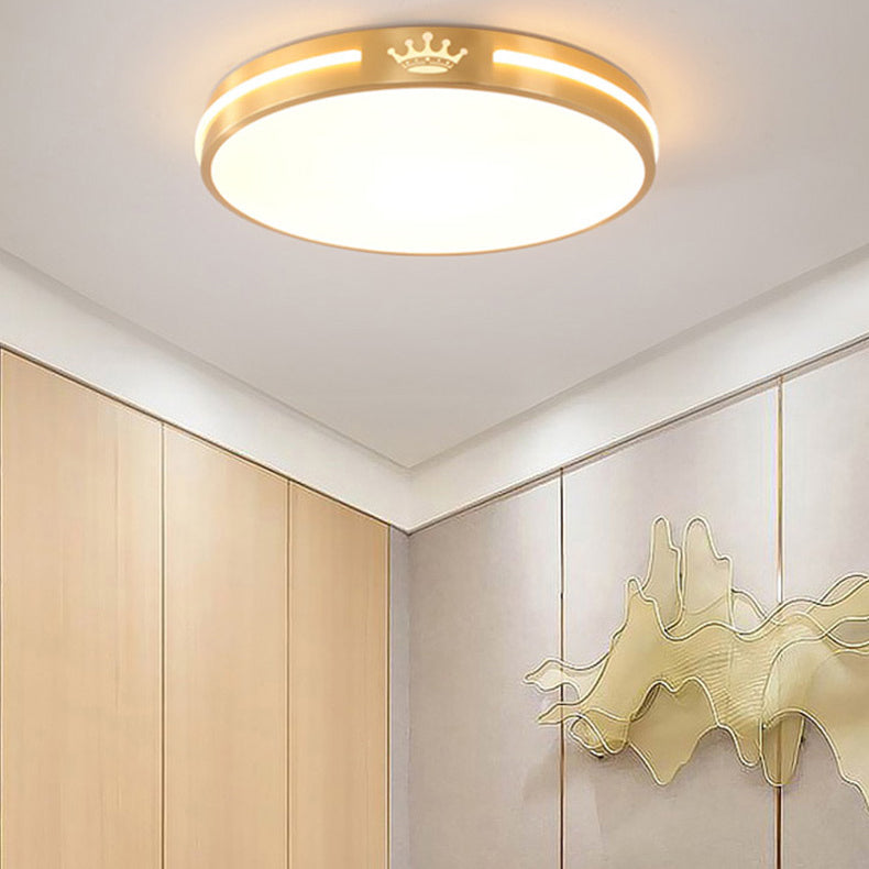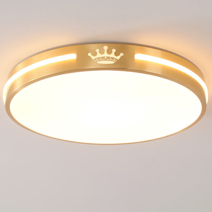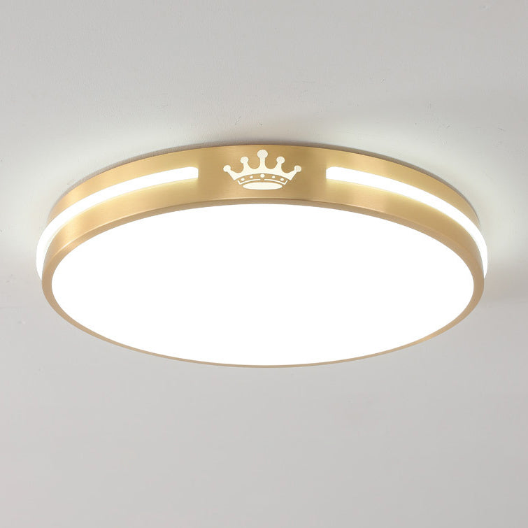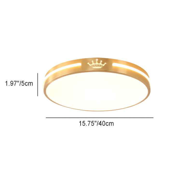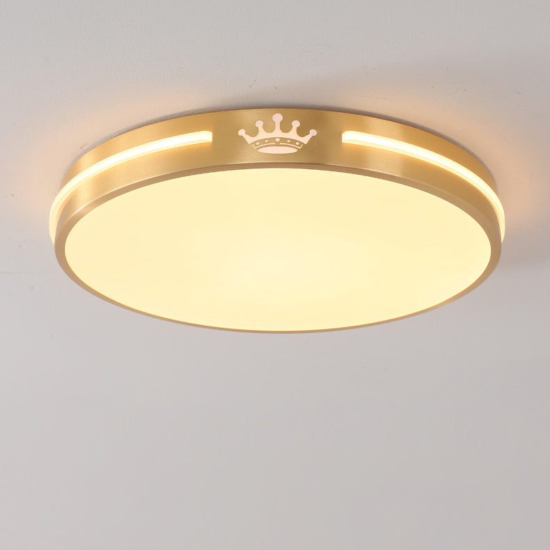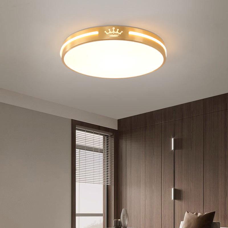 Modern Minimalist Round Crown Acrylic Copper LED Flush Mount Ceiling Light For Living Room
