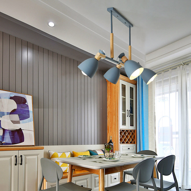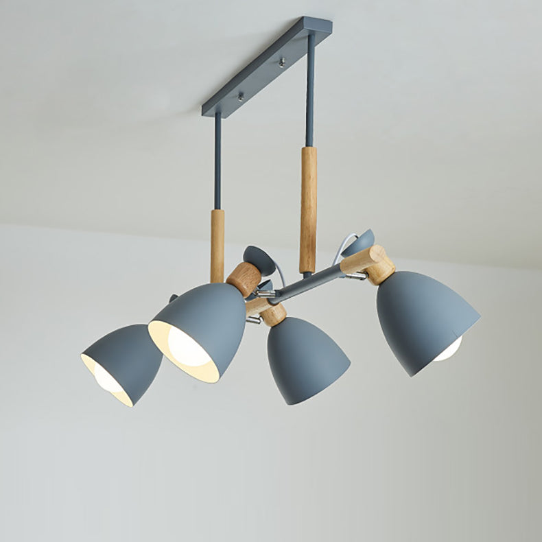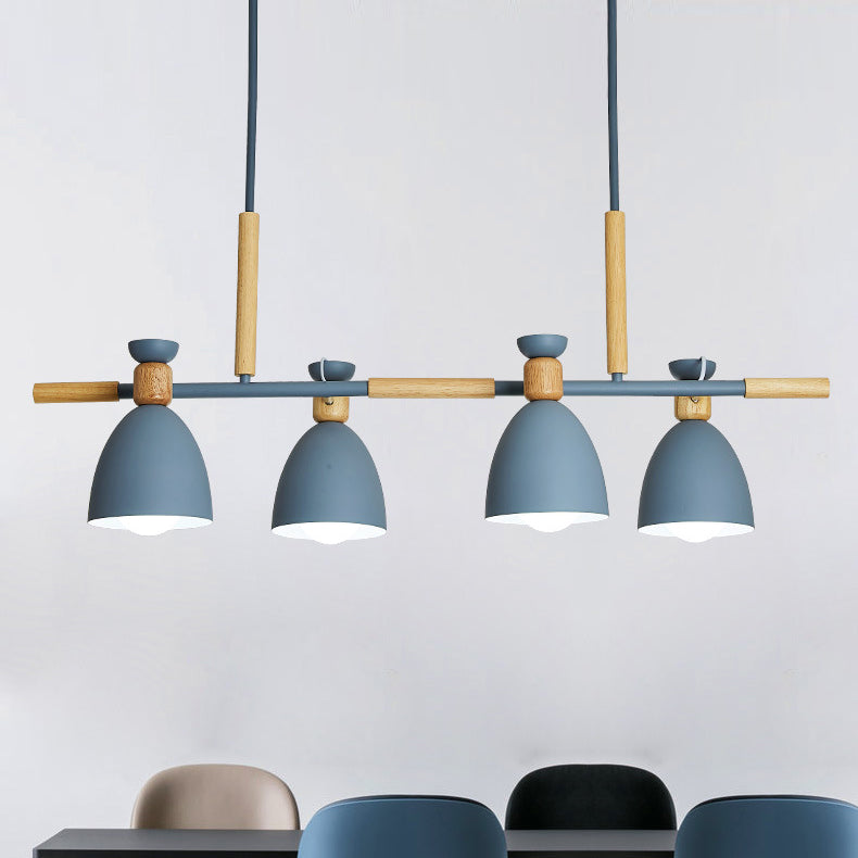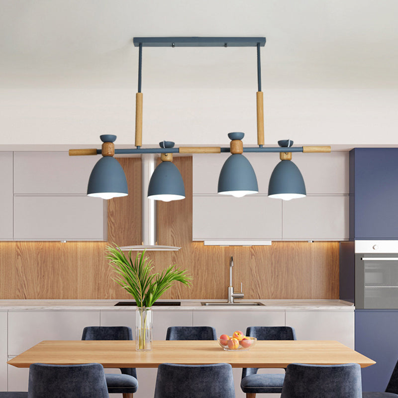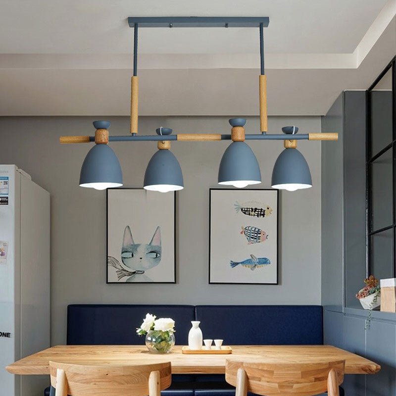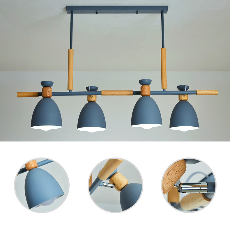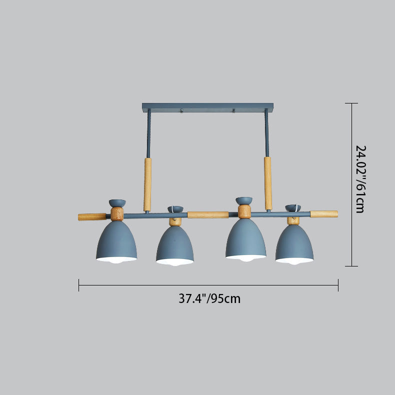 Modern Minimalist Round Cup Wood Metal 4-Light Island Light Chandelier For Dining Room