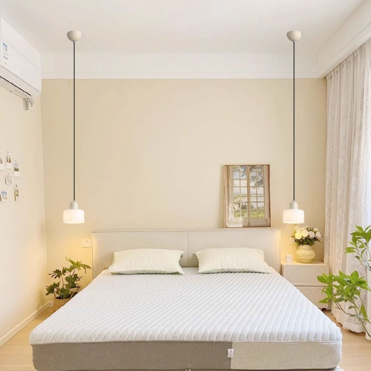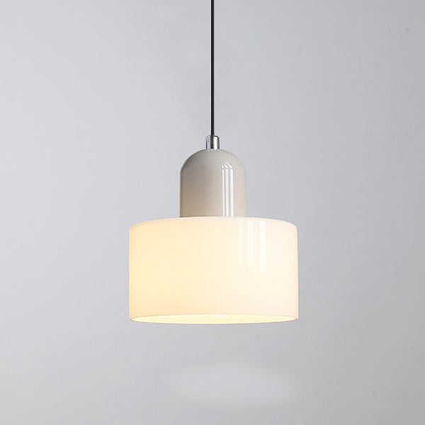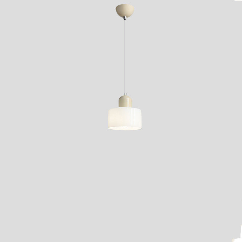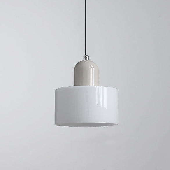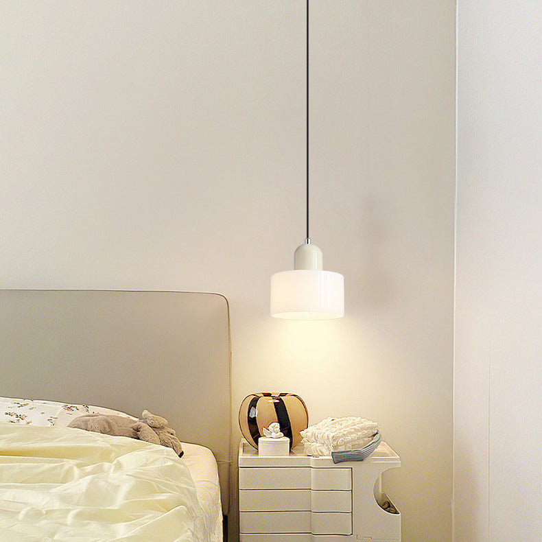 Modern Minimalist Round Cylinder Iron Glass 1-Light Pendant Light For Bedroom