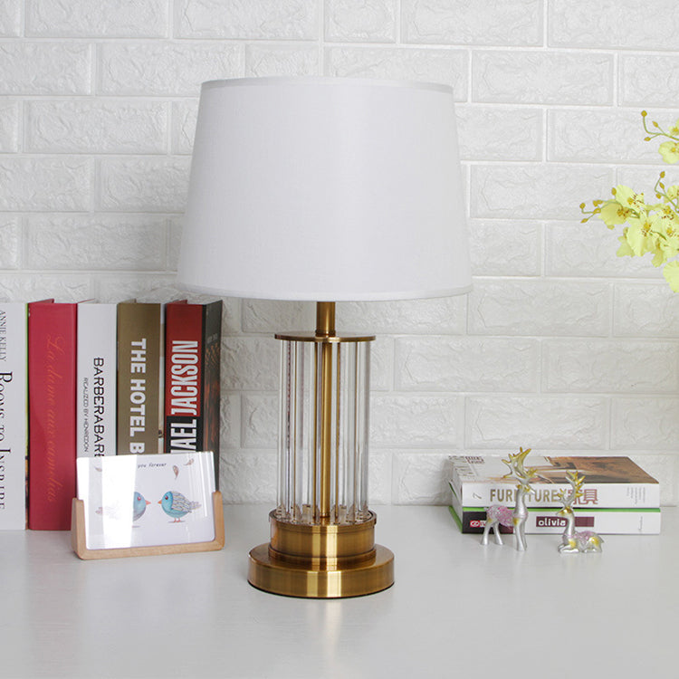 Modern Minimalist Round Cylinder Metal Crystal Fabric 1-Light Table Lamp For Bedroom