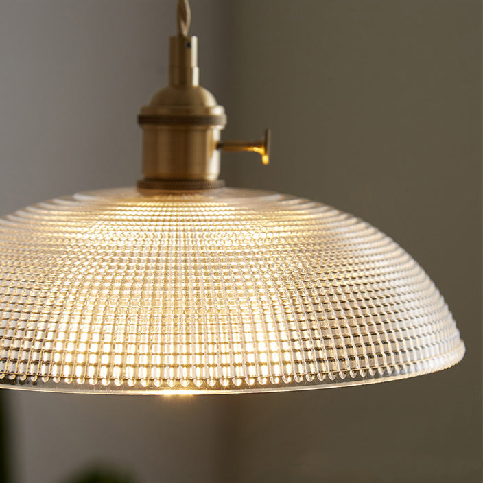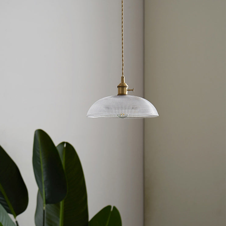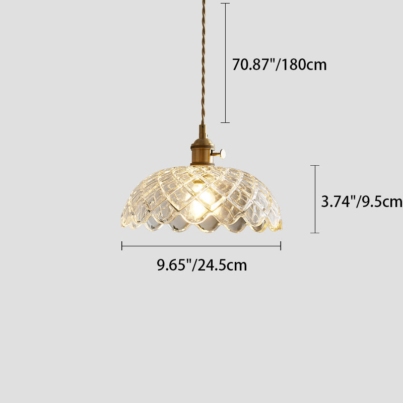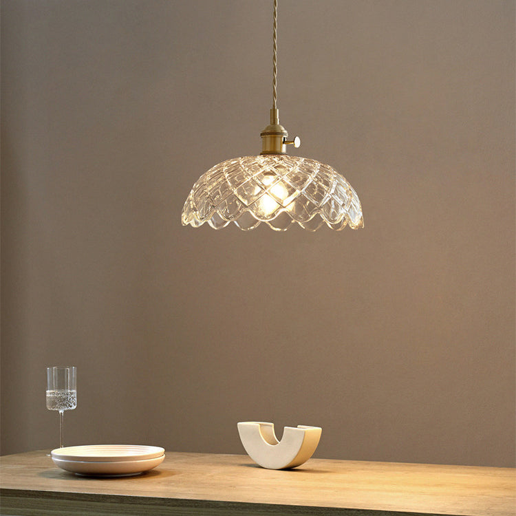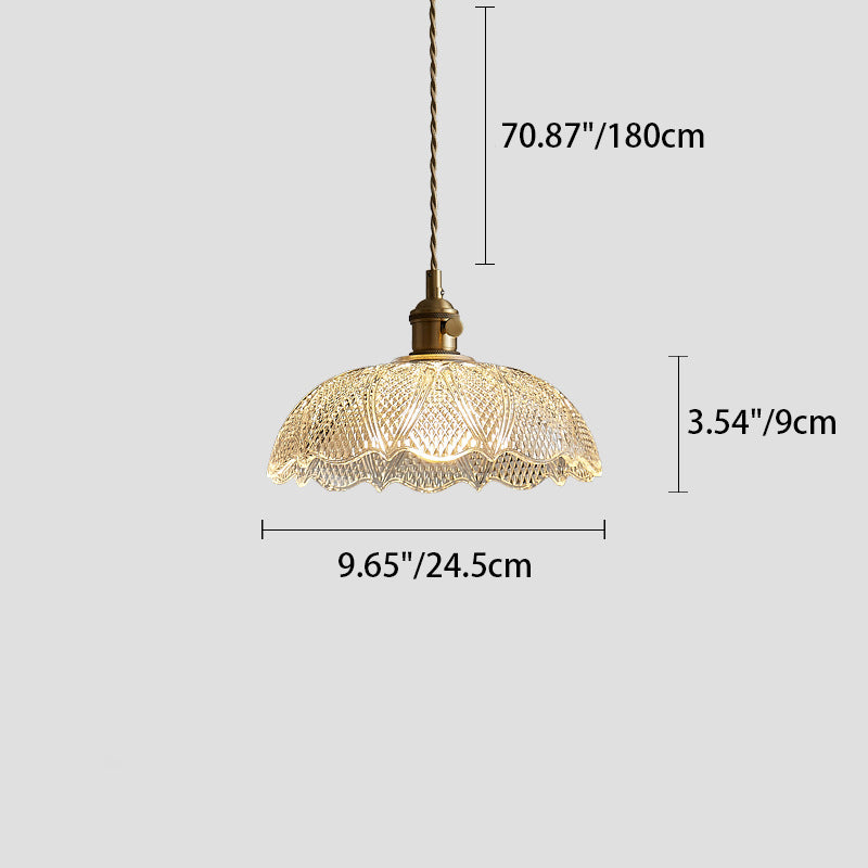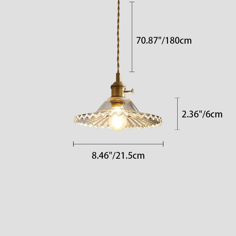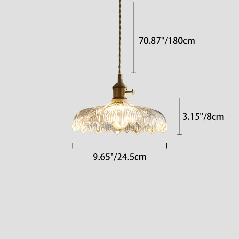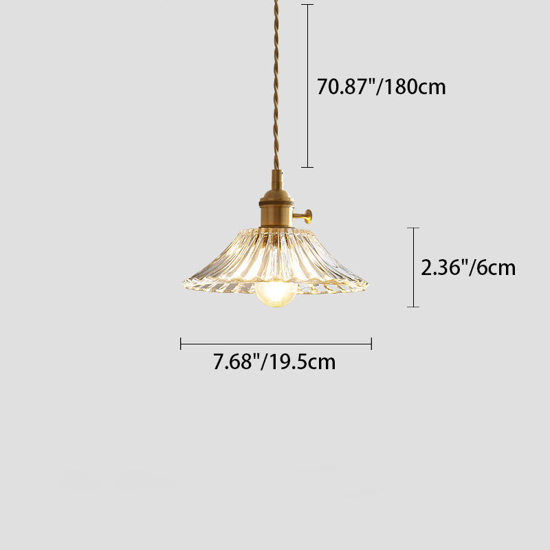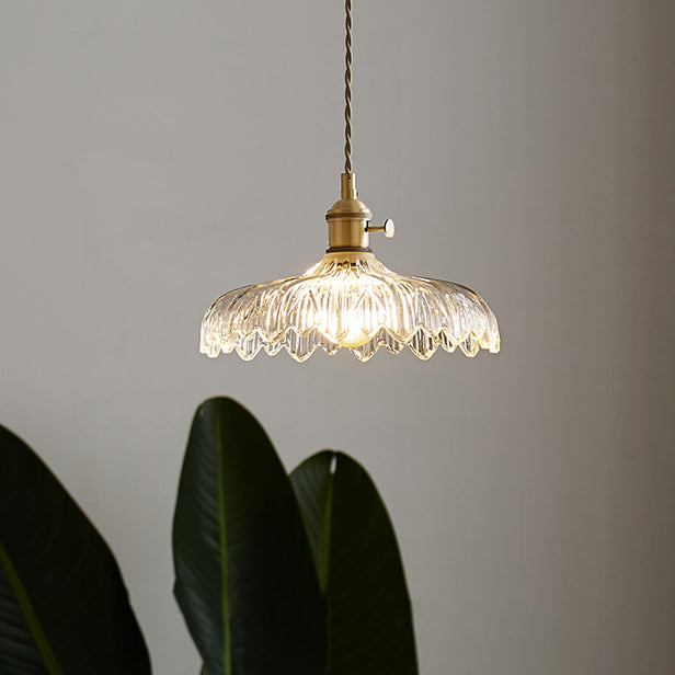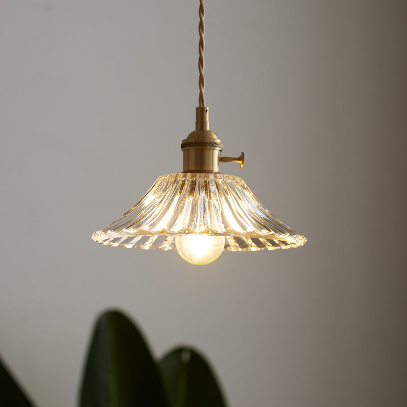 Modern Minimalist Round Flower Cone Brass Glass 1-Light Pendant For Living Room