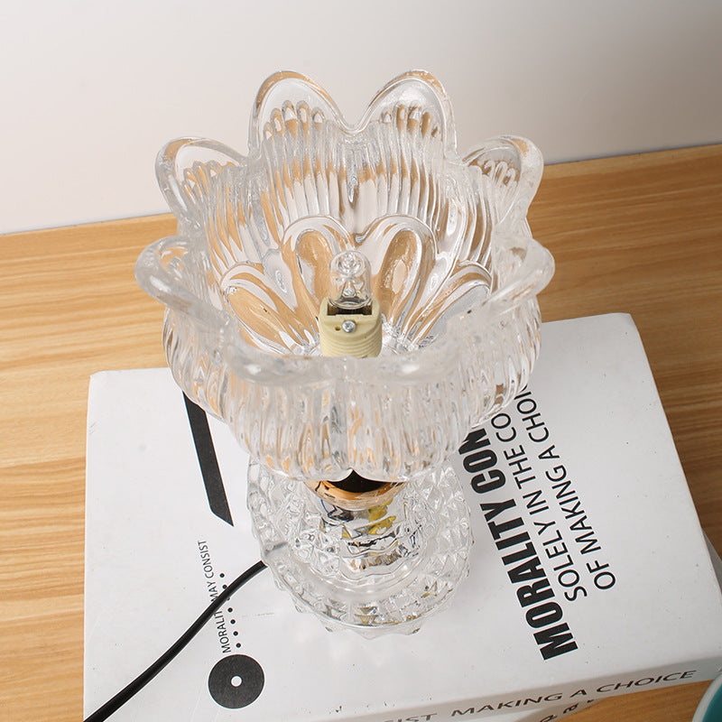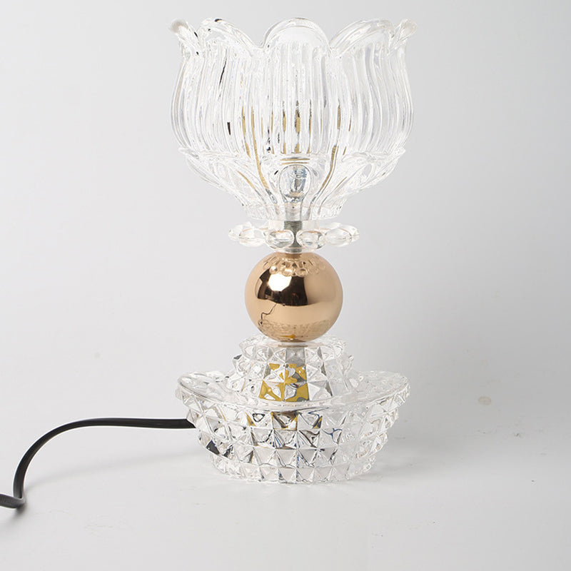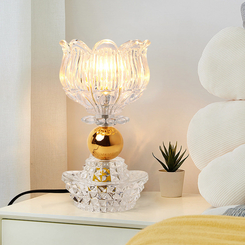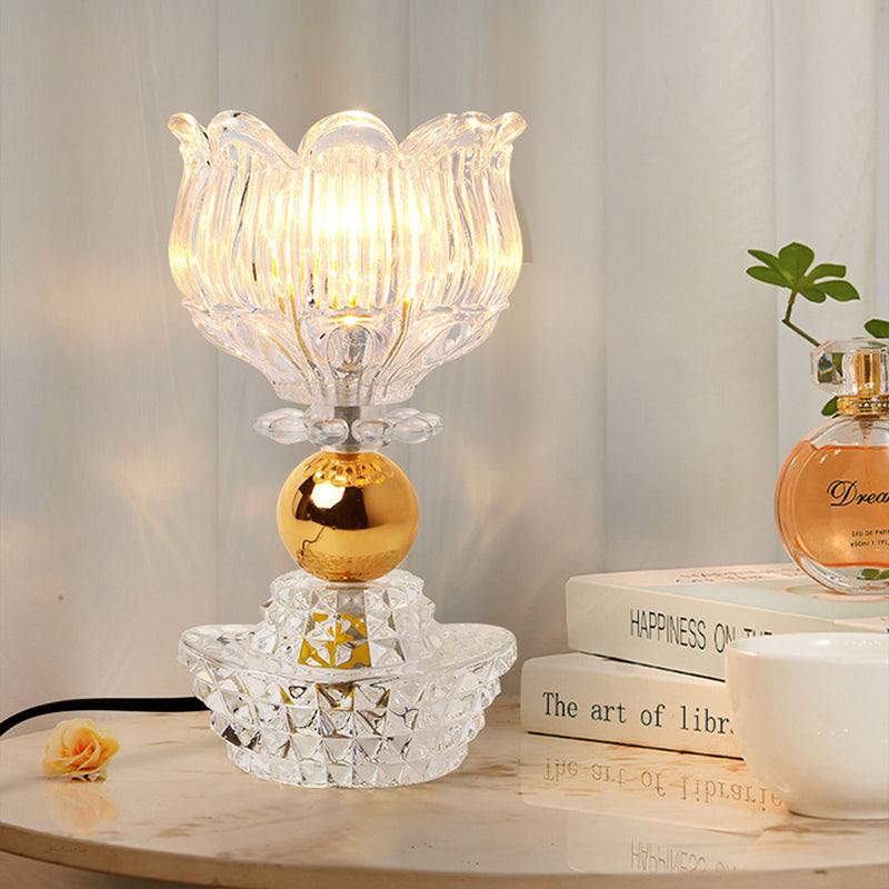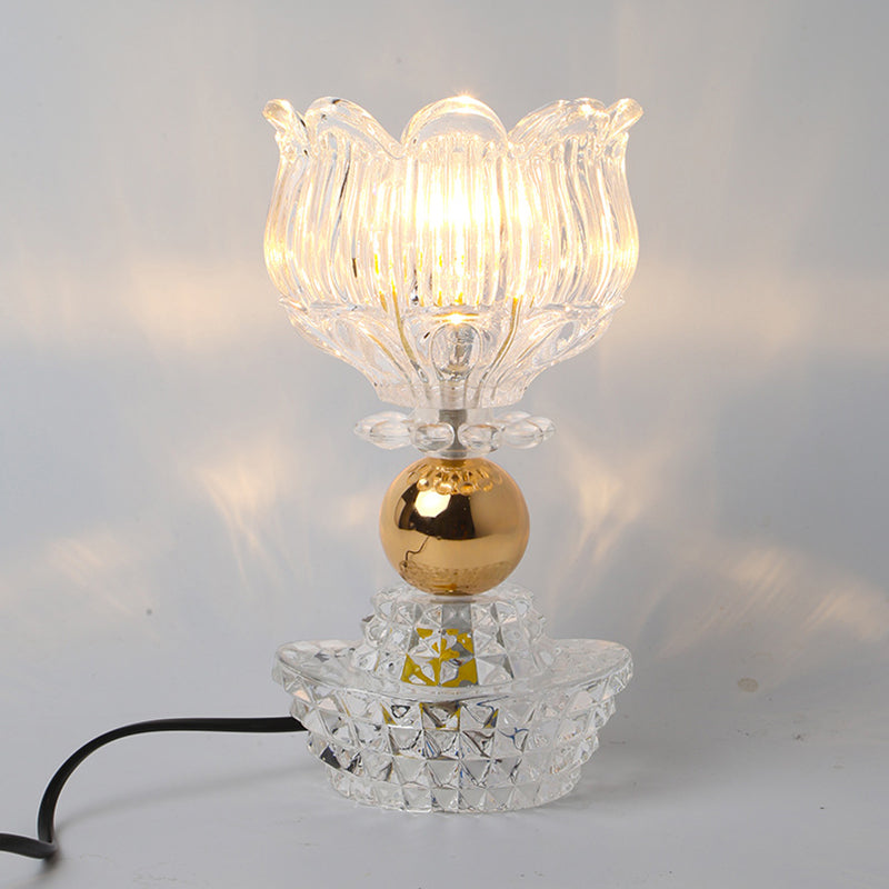 Modern Minimalist Round Flower Glass Metal LED Table Lamp For Bedroom