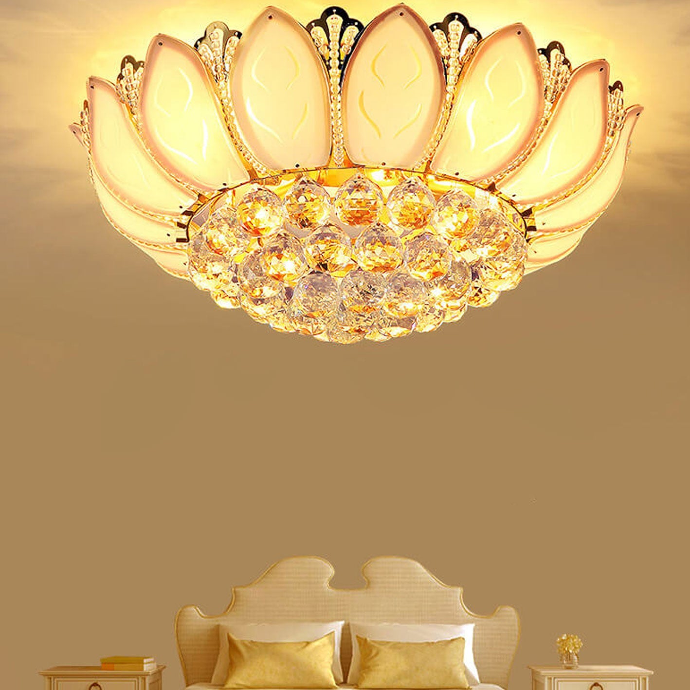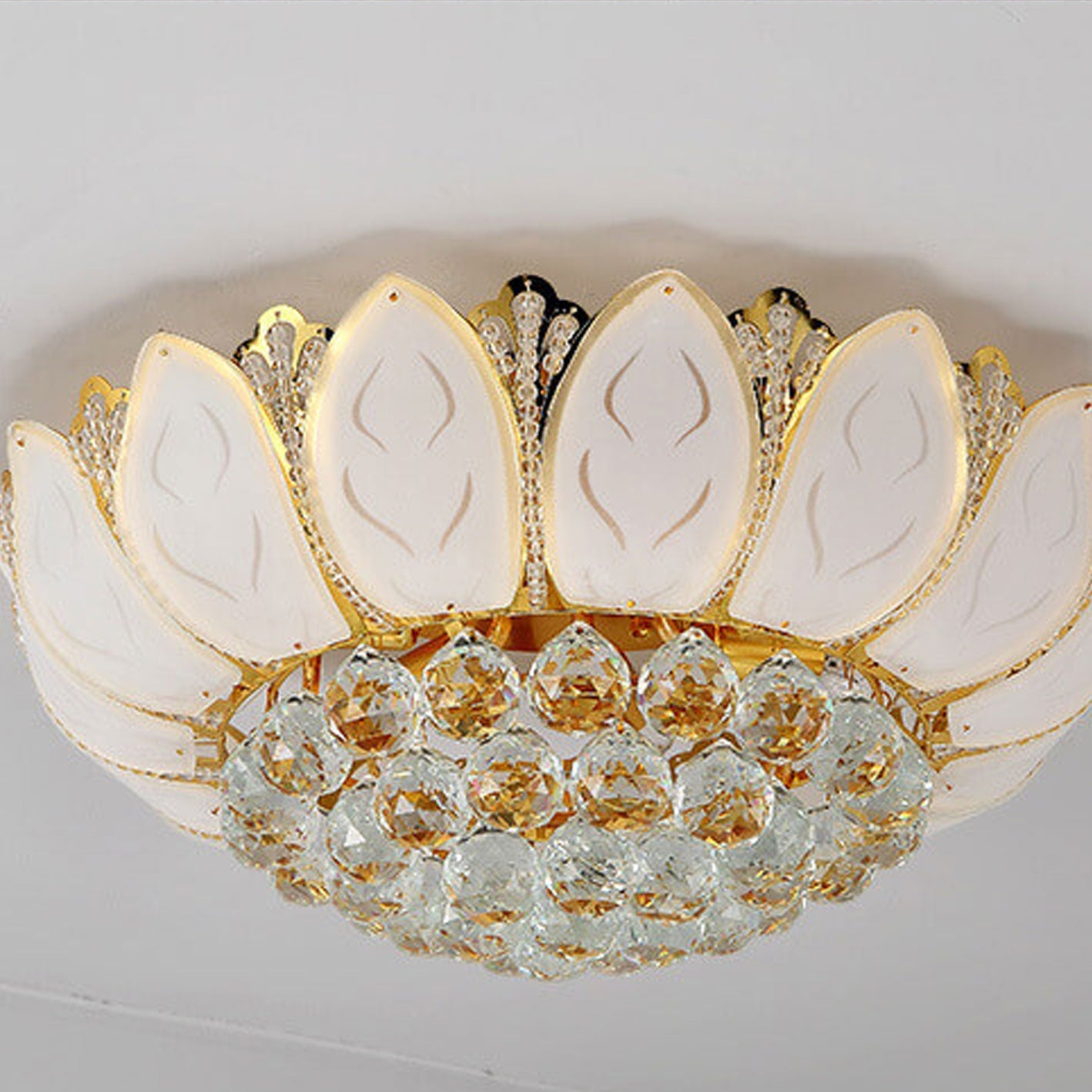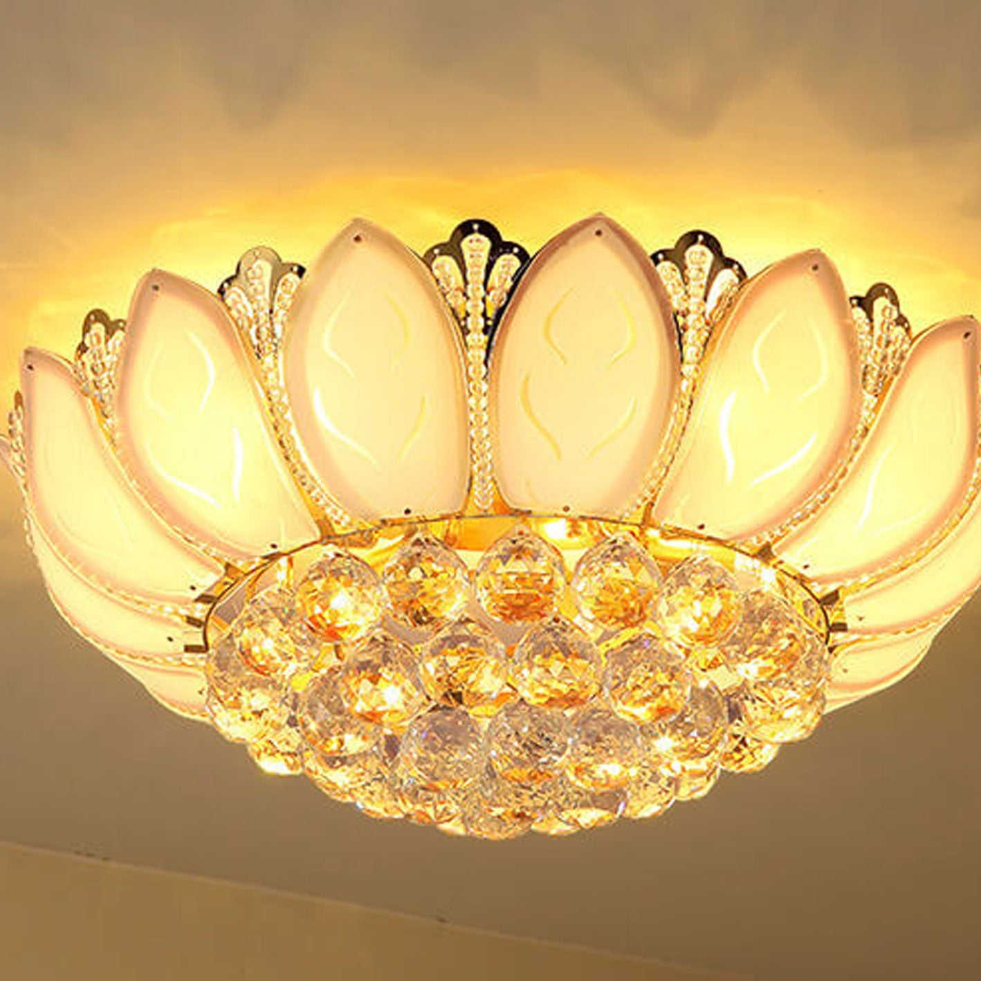 Modern Minimalist Round Lotus Crystal Flush Mount Ceiling Light
