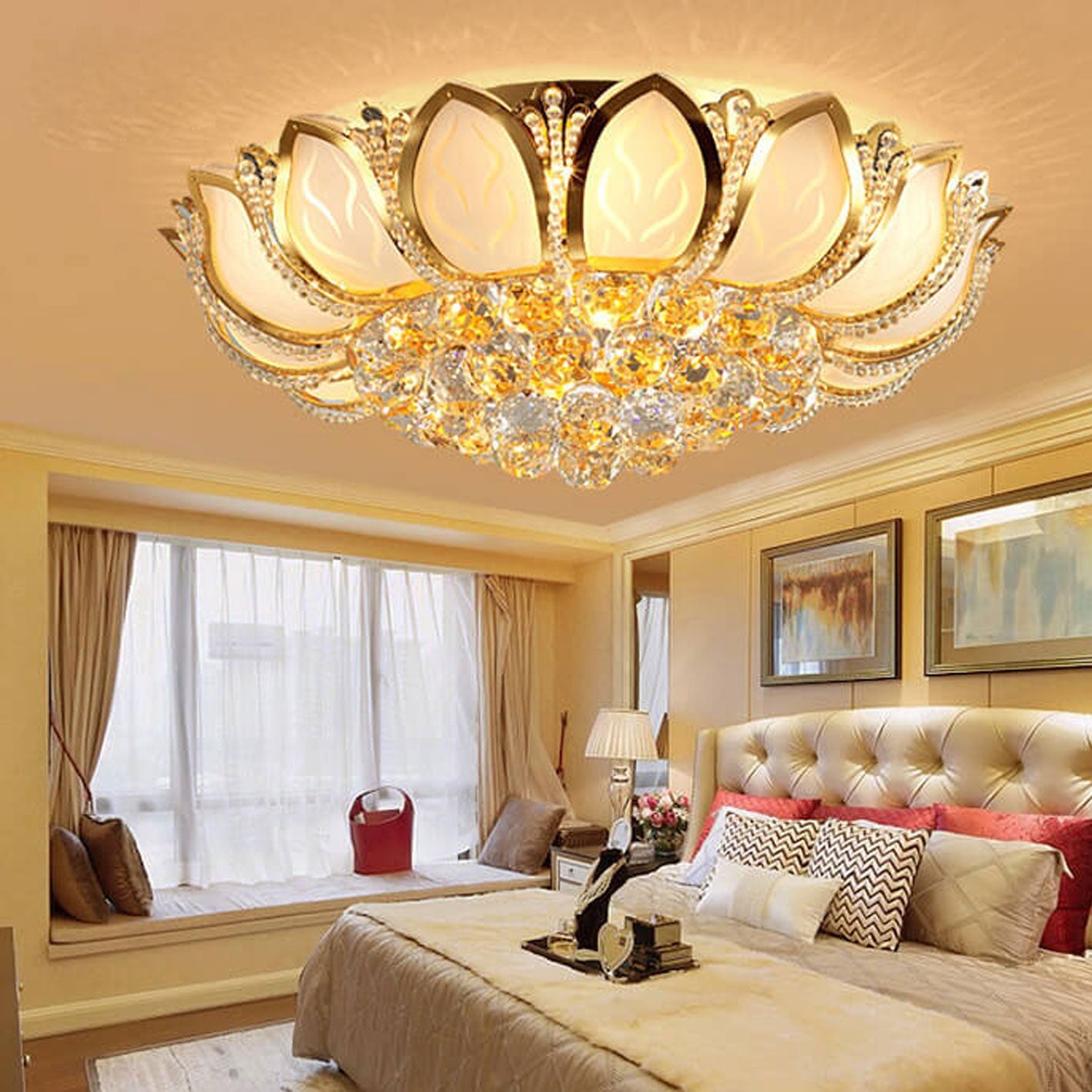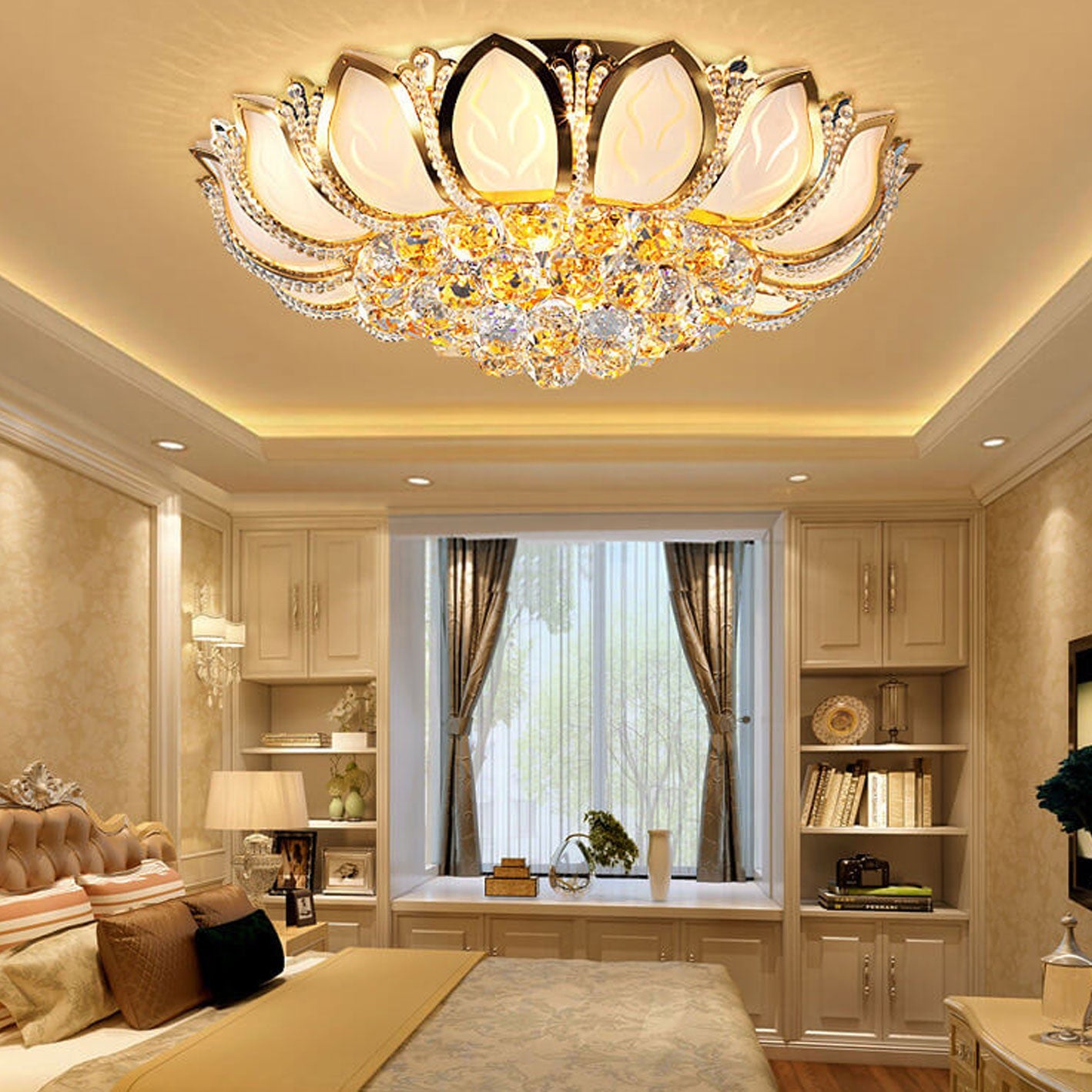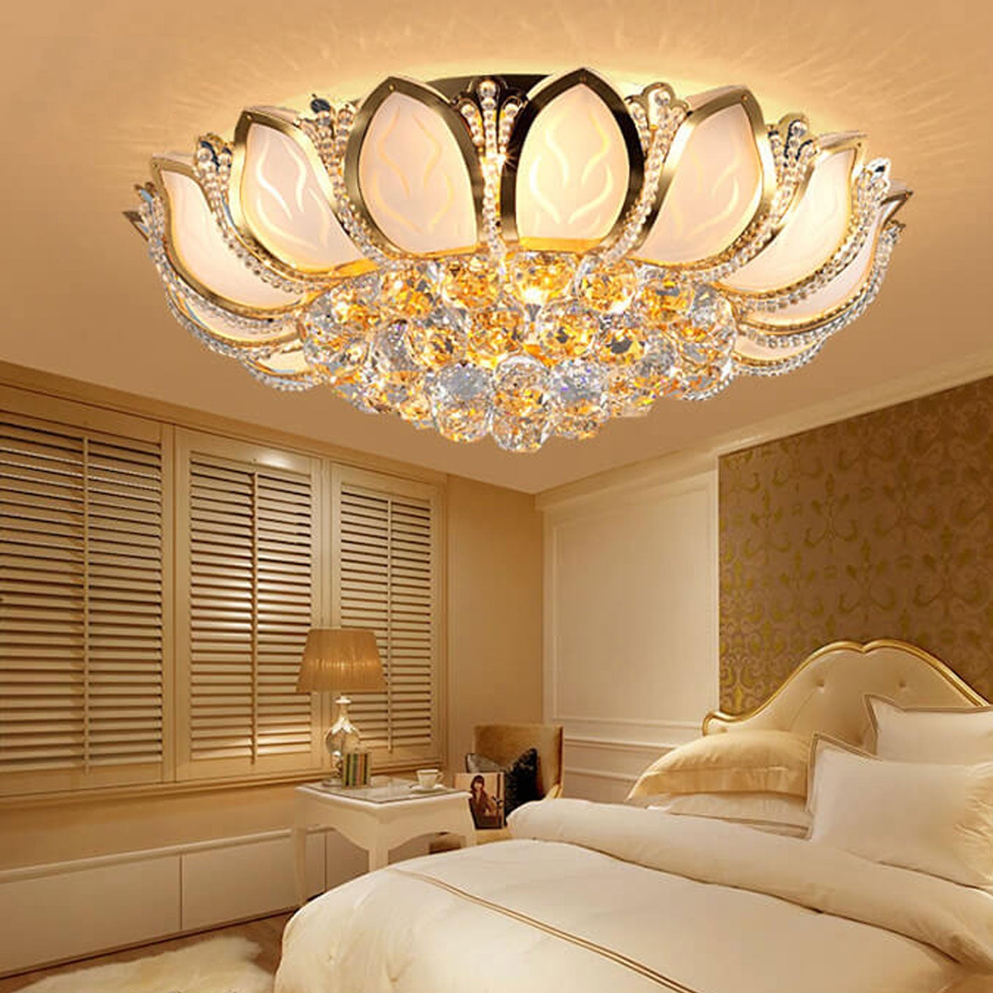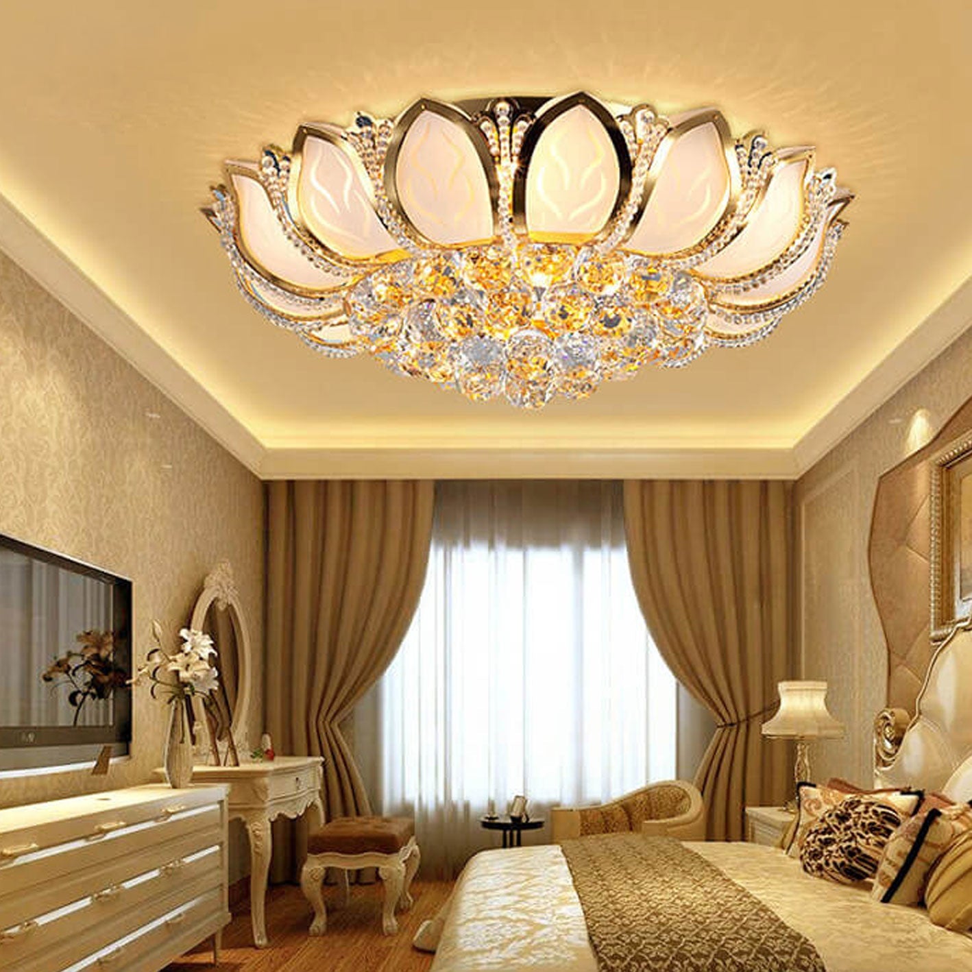 Modern Minimalist Round Lotus Crystal Flush Mount Ceiling Light