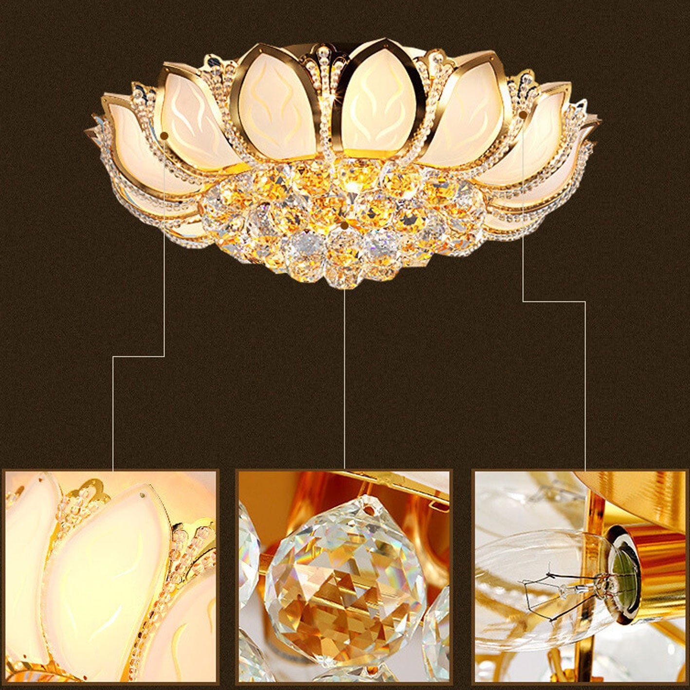 Material | Crystal + Gold Plated Lamp Holder |
