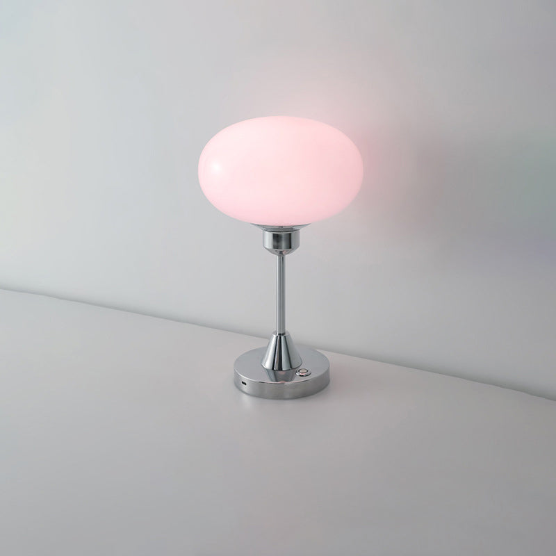 Modern Minimalist Round Ball Oval Disc Base Glass Iron 1-Light Table Lamp For Bedroom