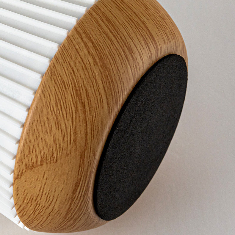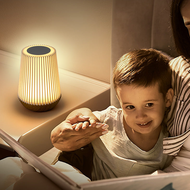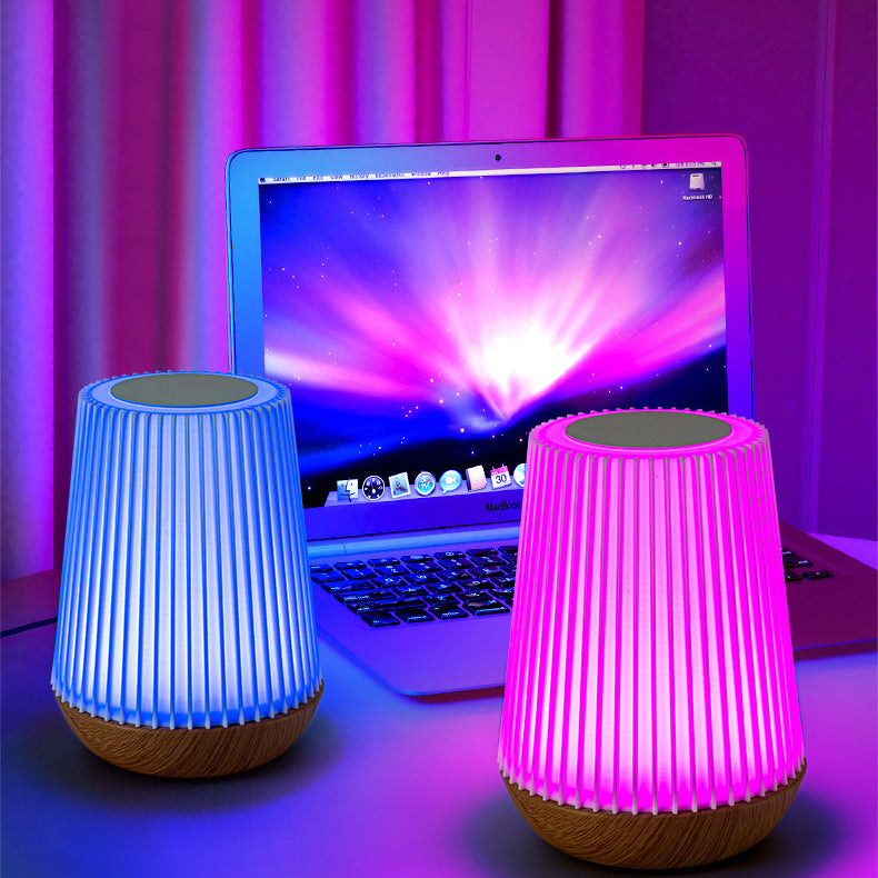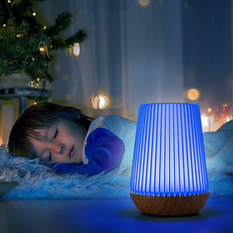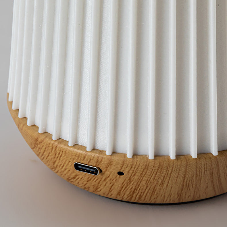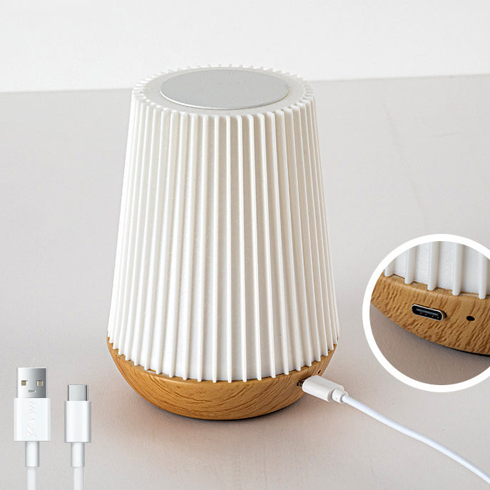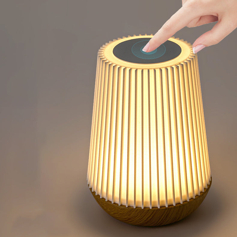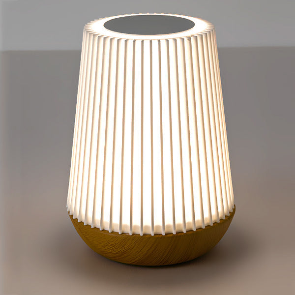 Modern Minimalist Round Table Striped Metal Wood Acrylic LED Table Lamp For Bedroom