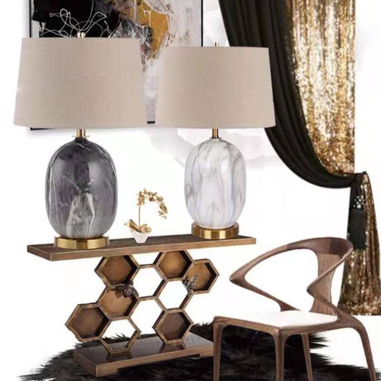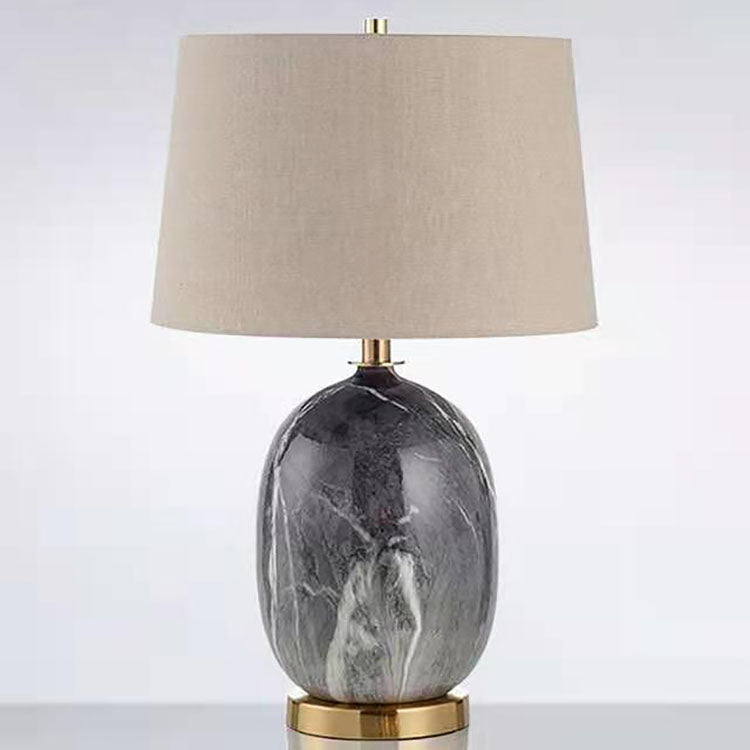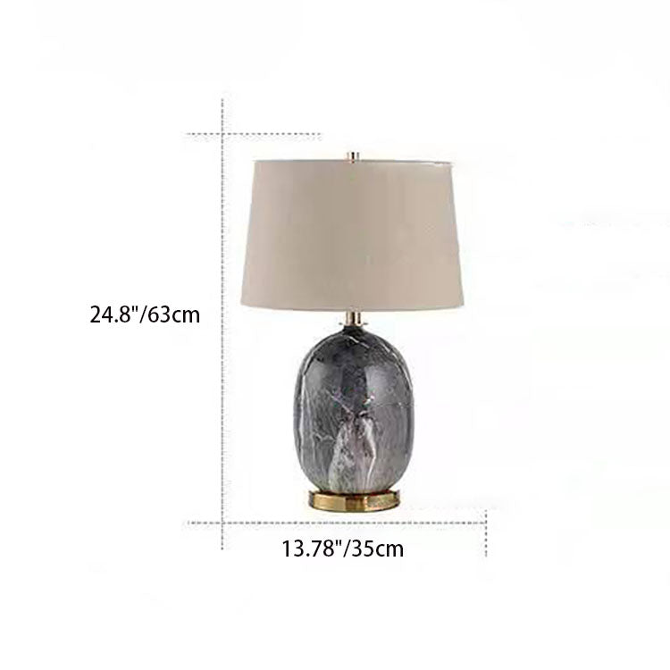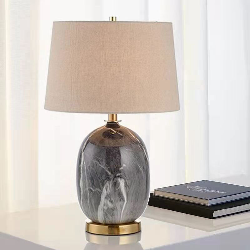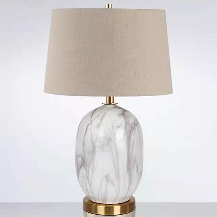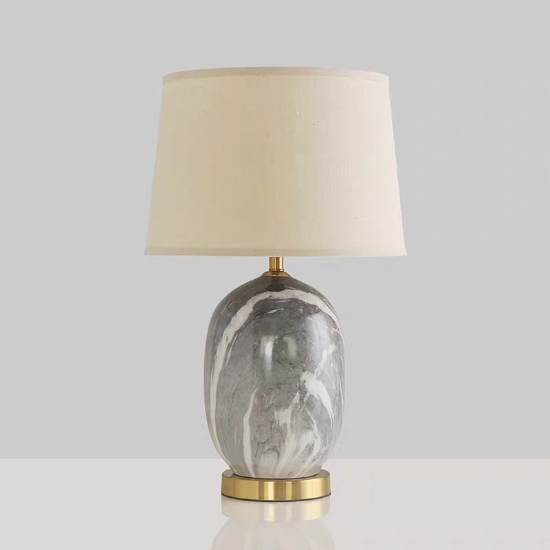Modern Minimalist Round Vase Base Ceramic Fabric 1-Light Table Lamp For Bedroom
