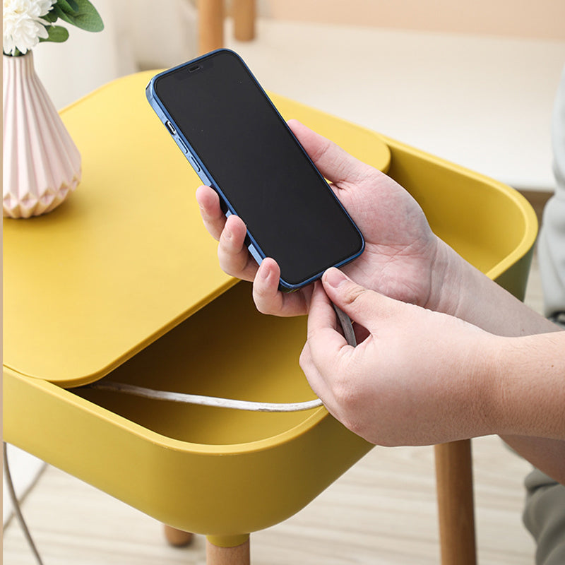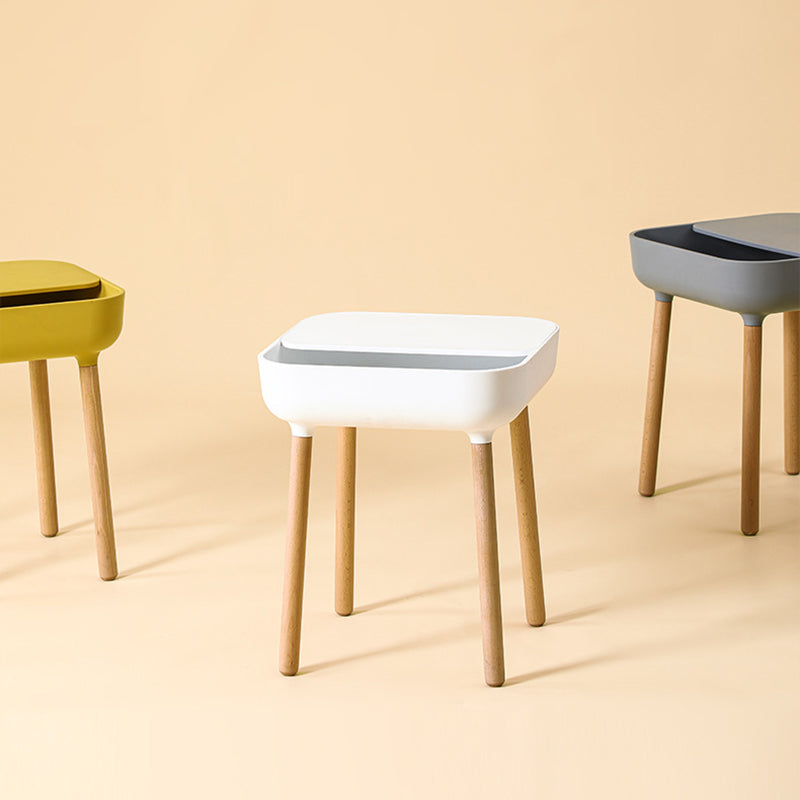 Modern Minimalist Square Desktop Plastic Nightstand With Solid Wood Legs 1-Drawer For Bedroom
