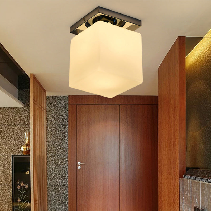 Modern Minimalist Square Metal Base Glass Shade 1-Light Semi-Flush Mount Ceiling Light For Living Room
