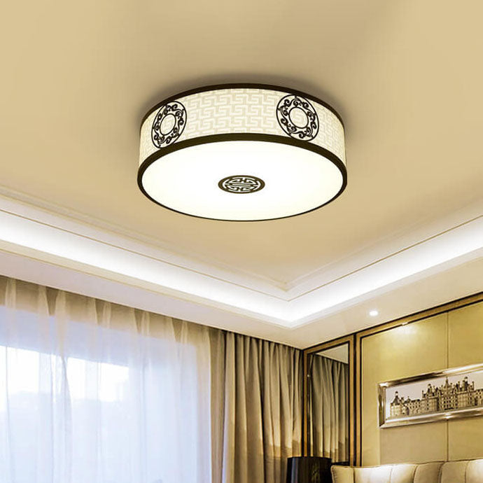 Modern New Chinese Round Fabric Drum LED Flush Mount Ceiling Light