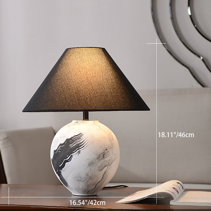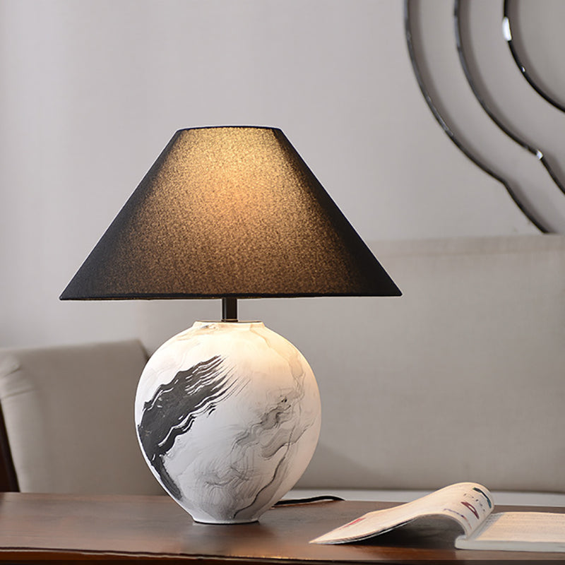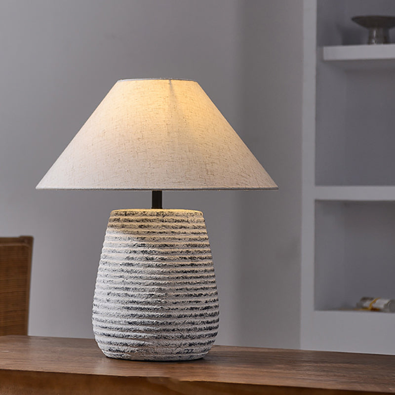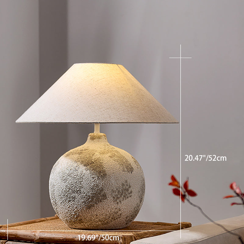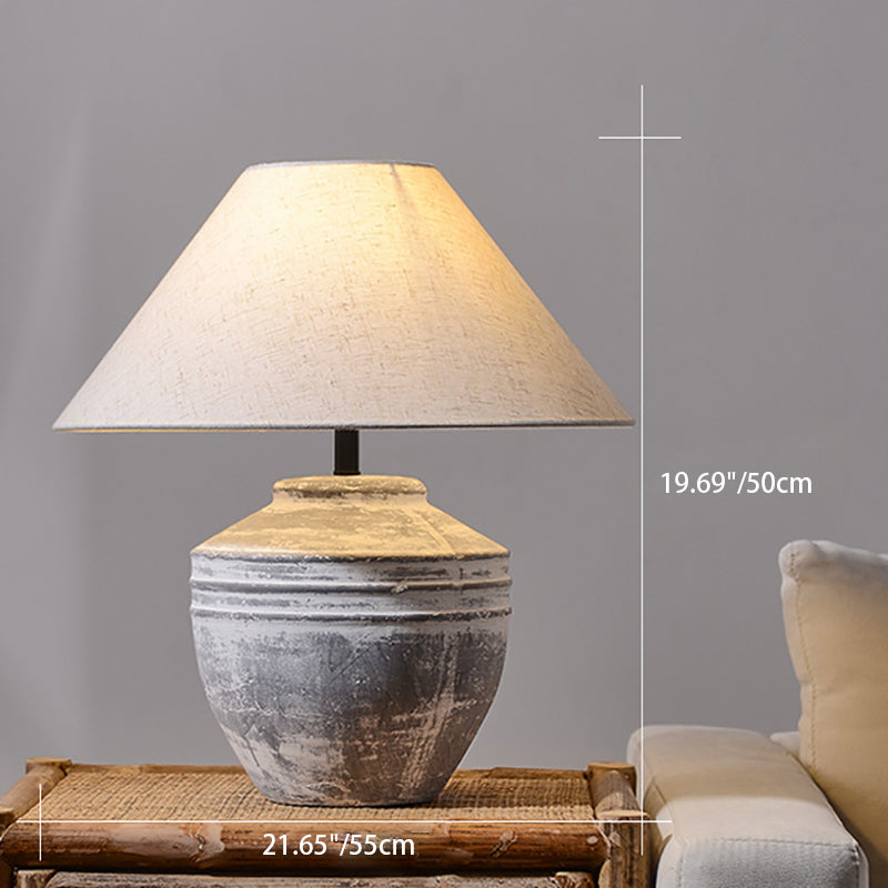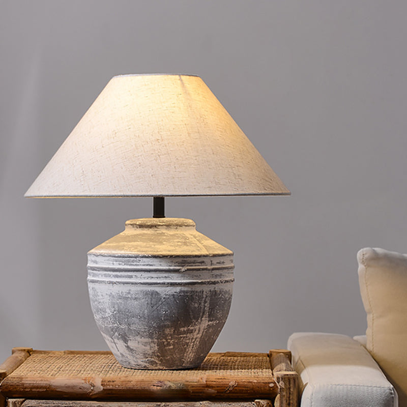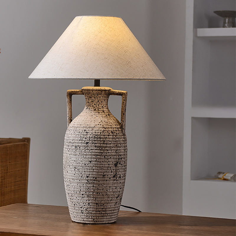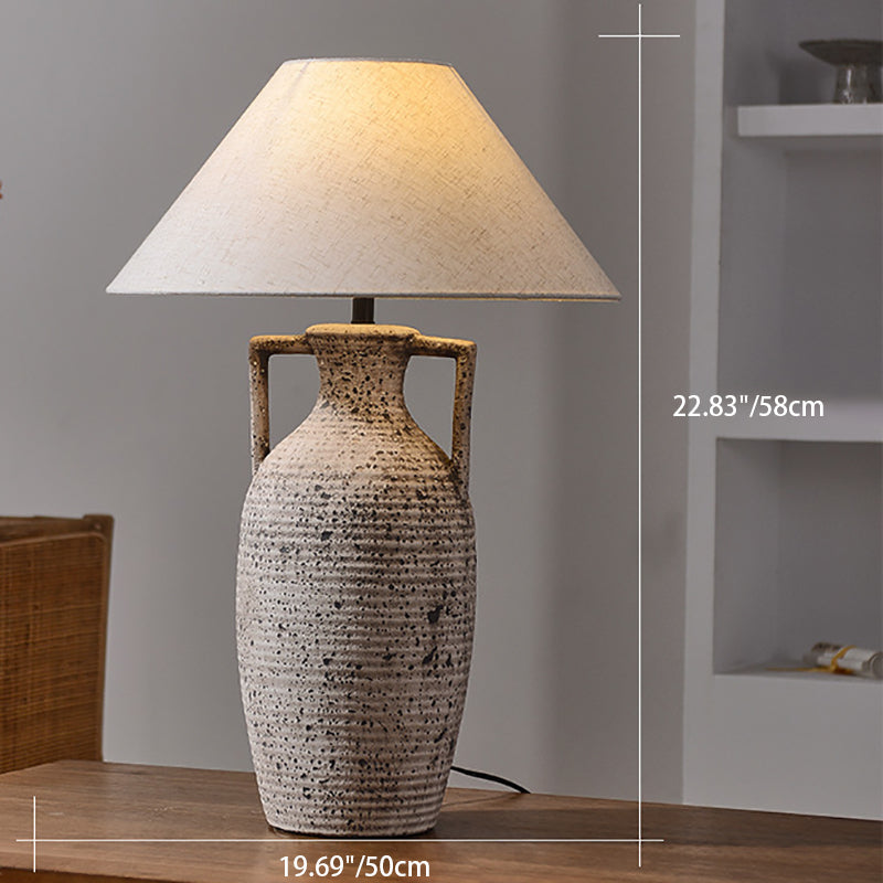 Modern Shabby Chic Ceramic Jar Linen Fabric Handmade 1-Light Table Lamp For Living Room