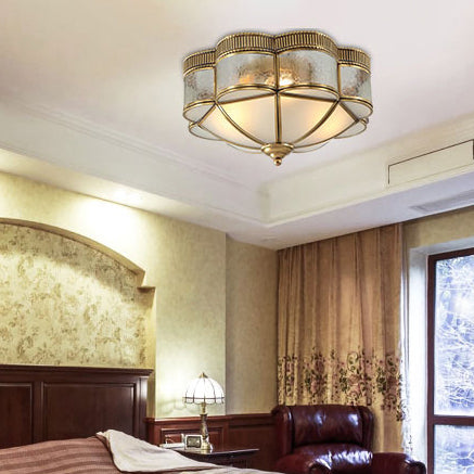 Modern Shabby Chic Copper Glass 3/4 Light Flush Mount Ceiling Light For Bedroom