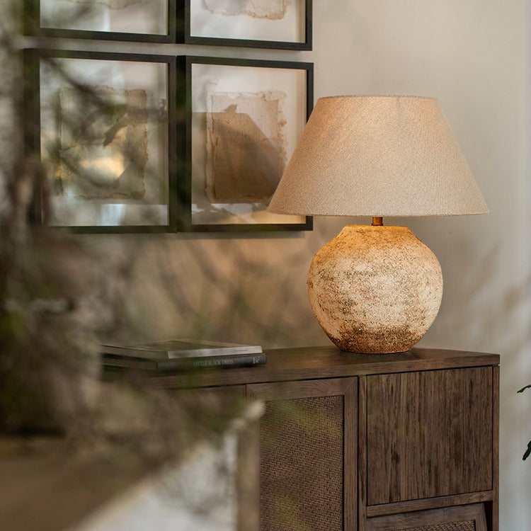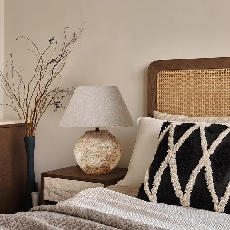 Modern Shabby Chic Frustum Cone Ceramic Fabric 1-Light Table Lamp For Bedroom
