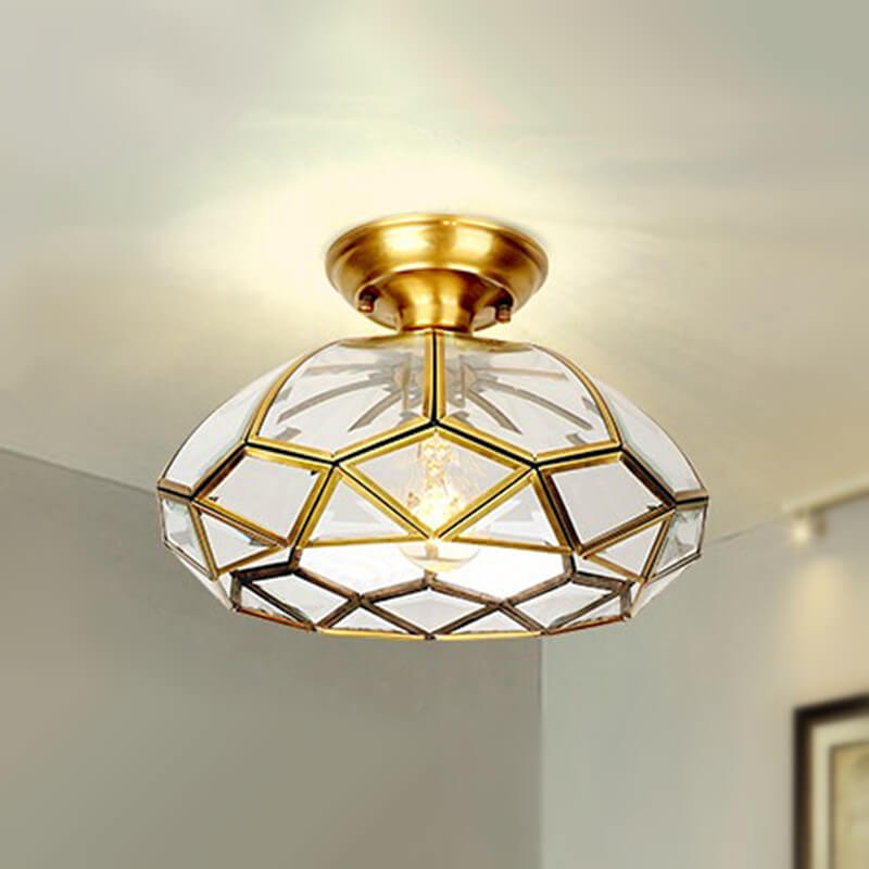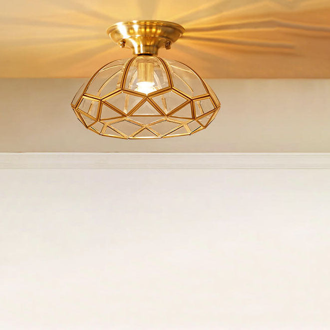 Modern Simple All-Copper Glass Flower-Shaped 1-Light Semi-Flush Mount Ceiling Light