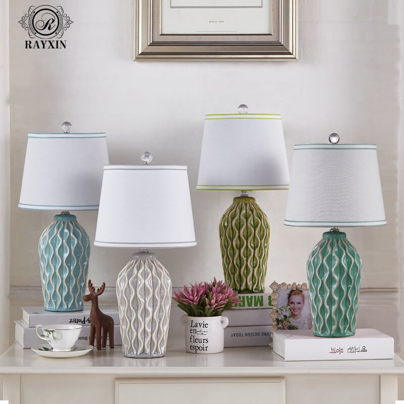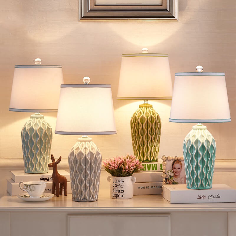 Modern Simple Fabric Ice Cracked Ceramics 1-Light Table Lamp
