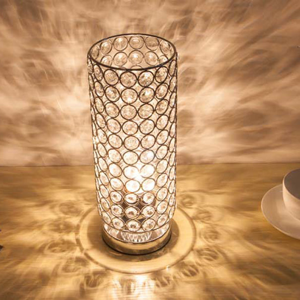 Modern Simplicity Cylinder Iron Crystal 1-Light Table Lamp For Living Room