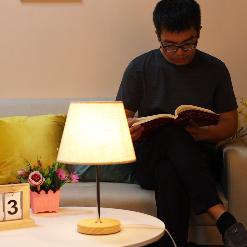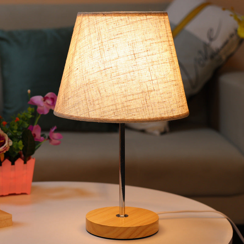 Modern Simplicity Fabric Round Shade Solid Wood 1-Light Table Lamp For Bedroom