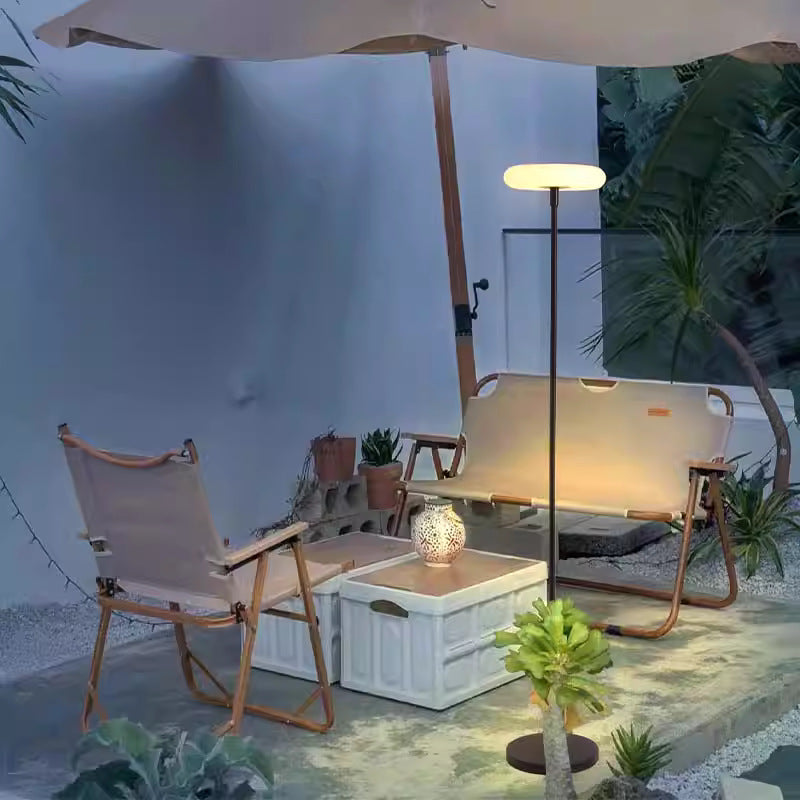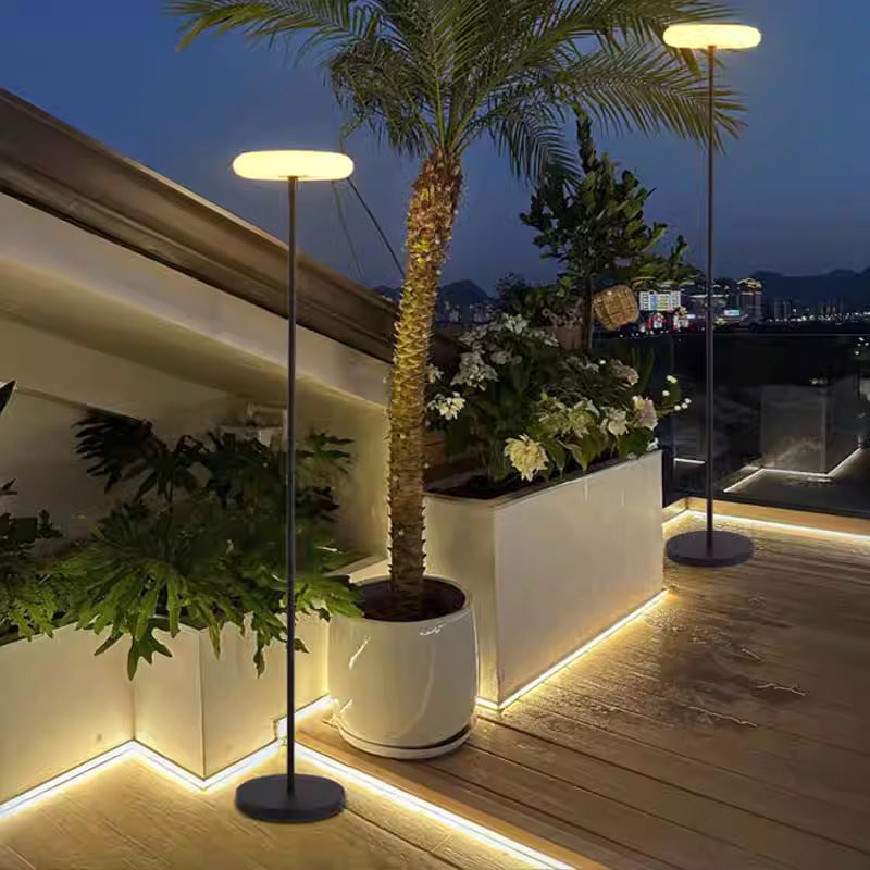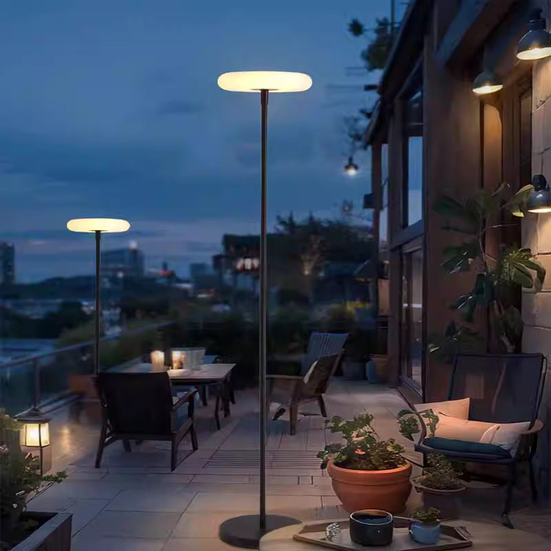 Modern Simplicity Solar Rechargeable Waterproof Round Aluminum PE LED Standing Floor Lamp Outdoor Light For Garden