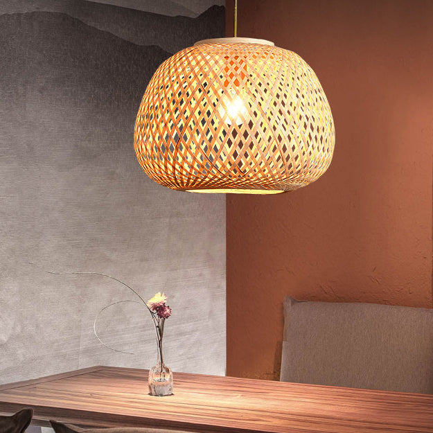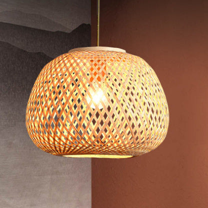 Modern Spiral Bamboo Weaving 1-Light Pendant Light