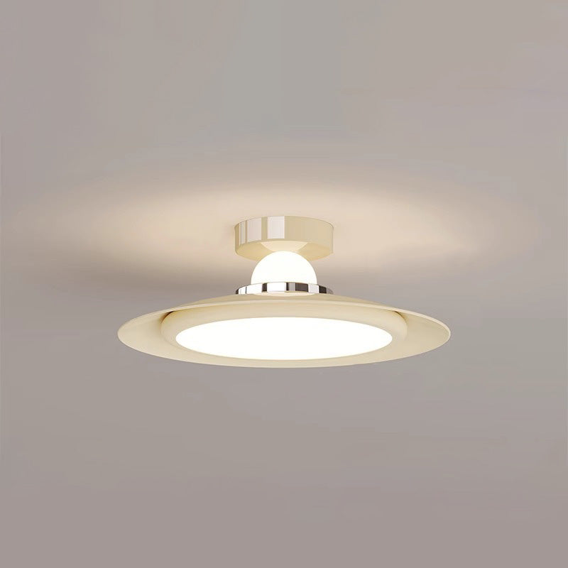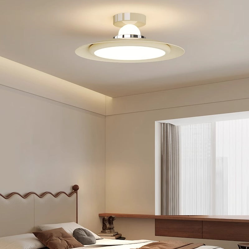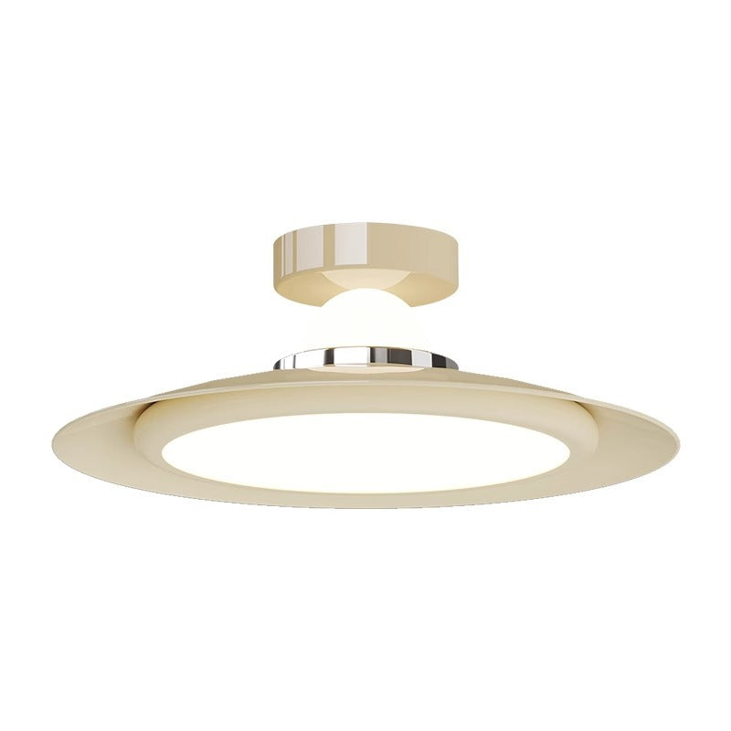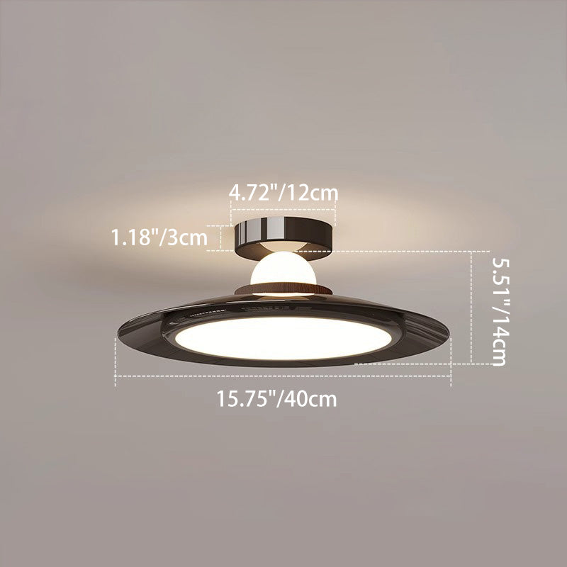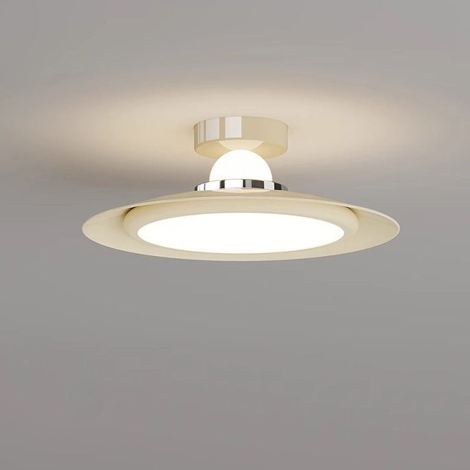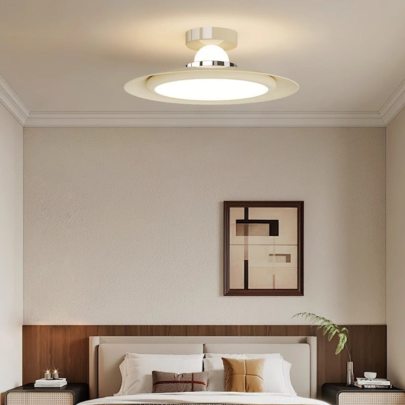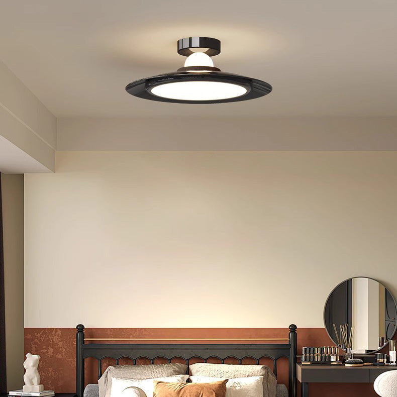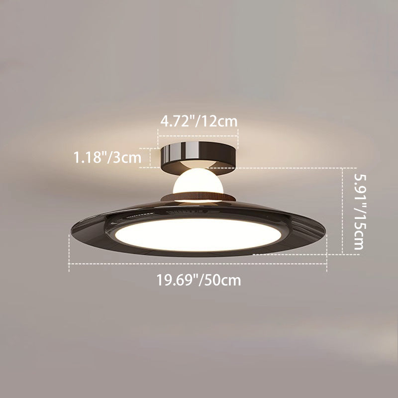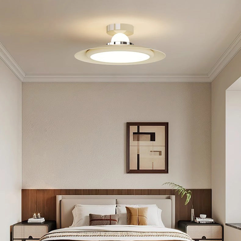 Modern Transitional Cream-Toned Flying Saucer Acrylic Shade Iron LED Semi-Flush Mount Ceiling Light For Bedroom