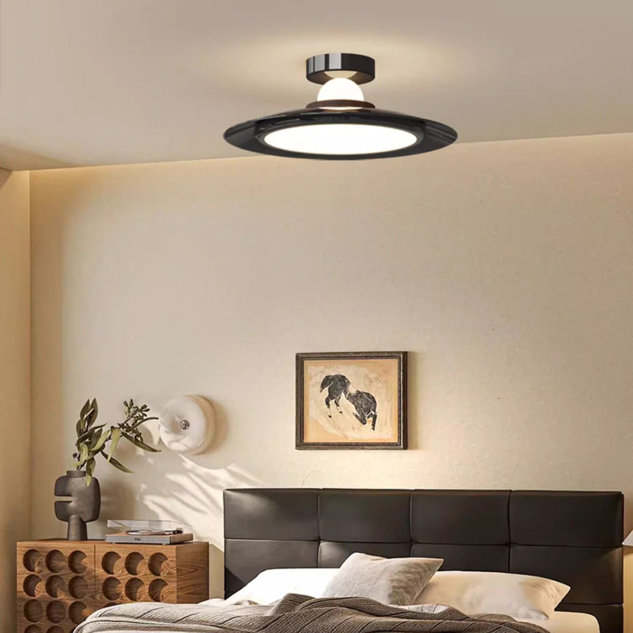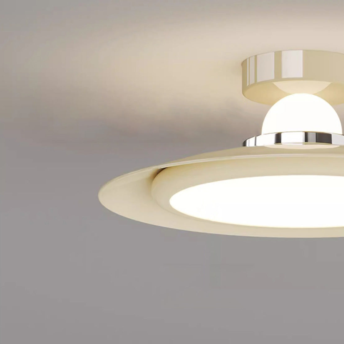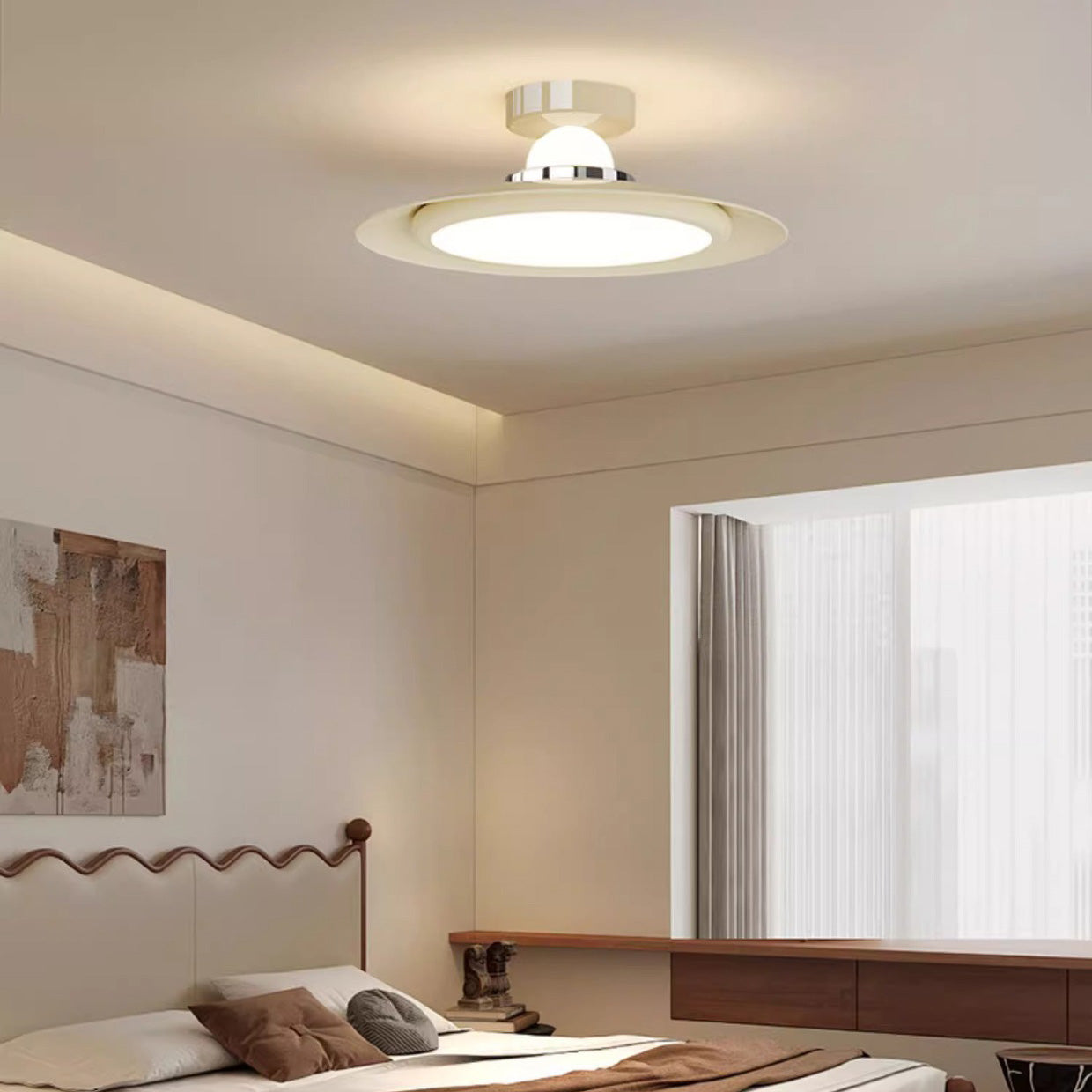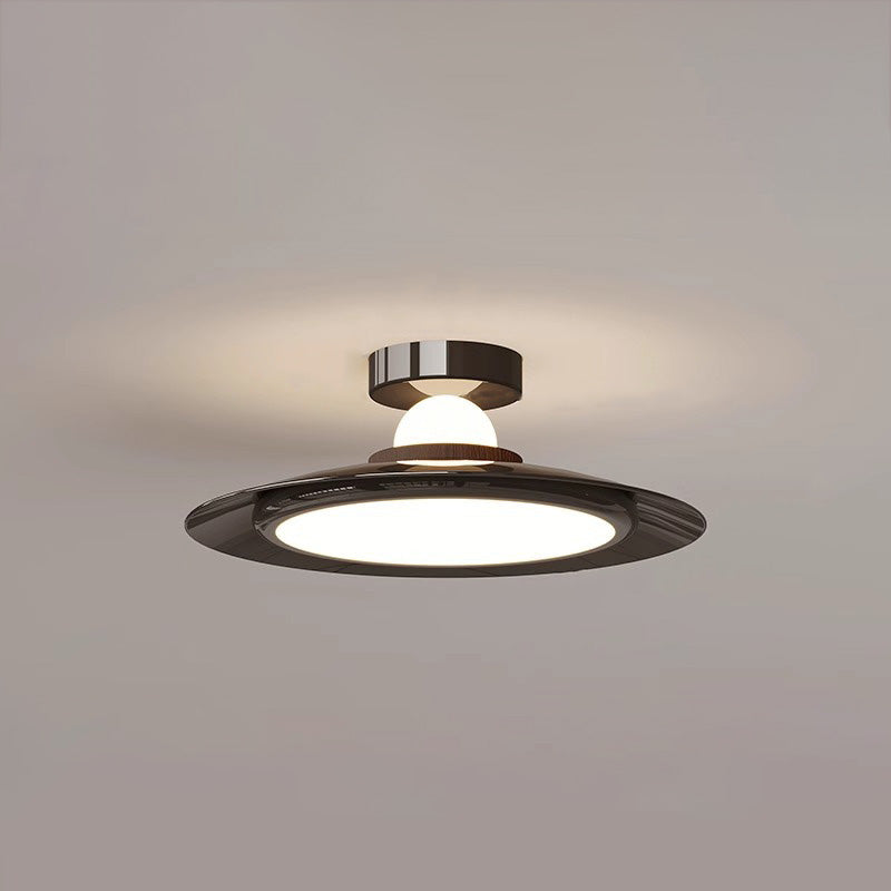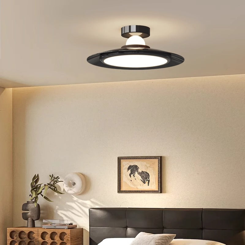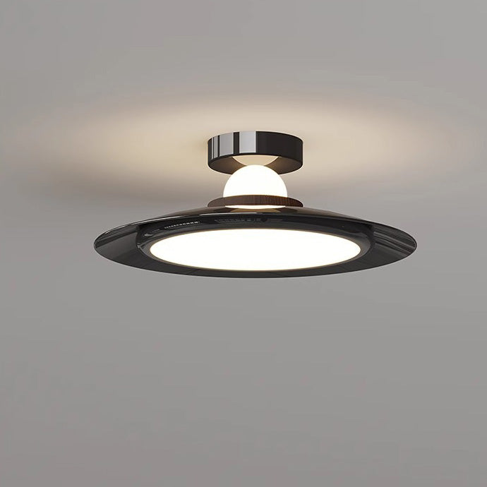 Modern Transitional Cream-Toned Flying Saucer Acrylic Shade Iron LED Semi-Flush Mount Ceiling Light For Bedroom