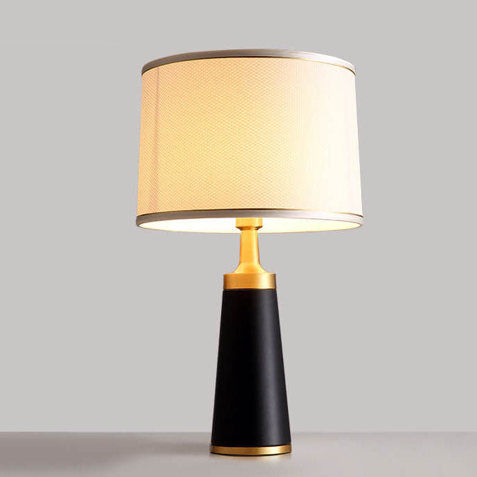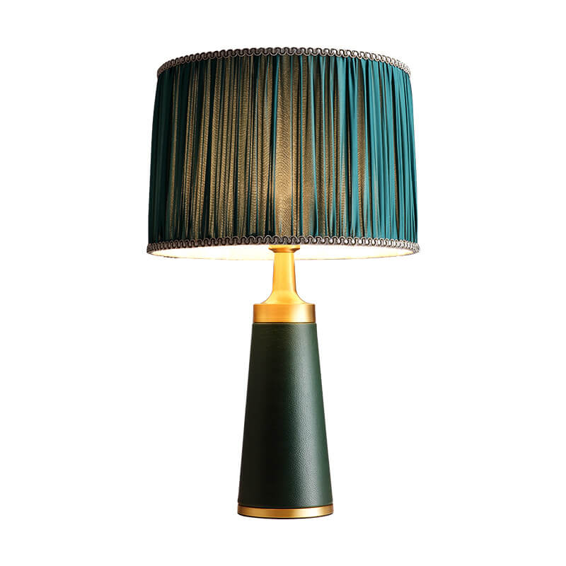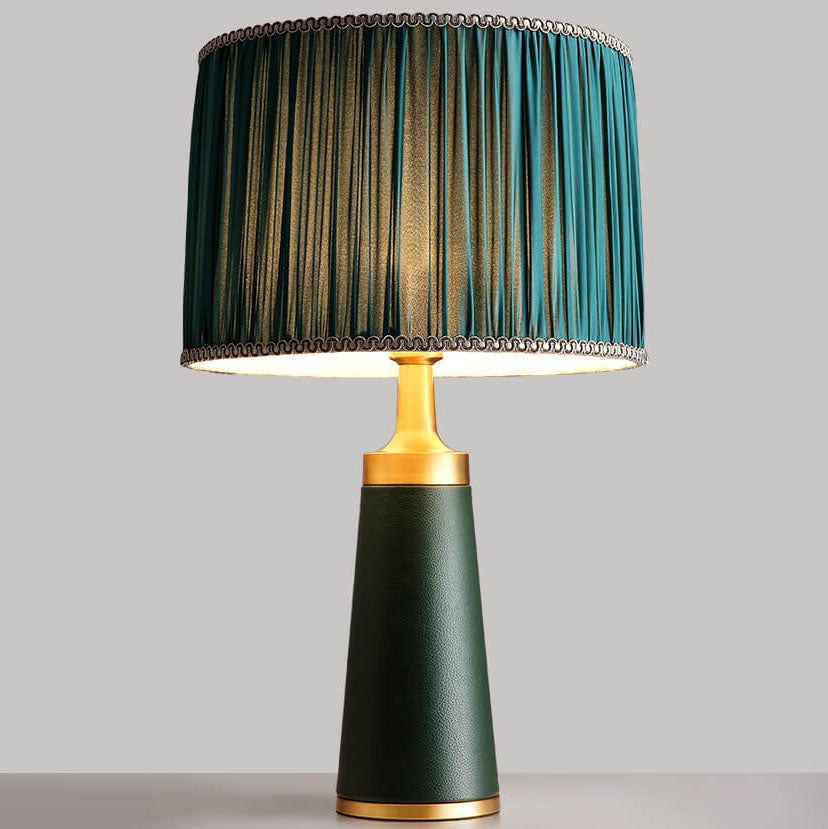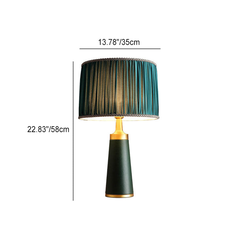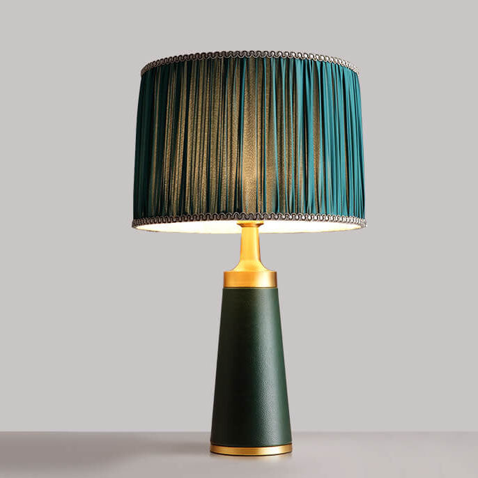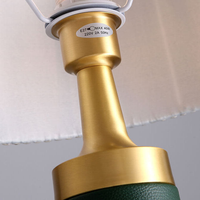 Modern Transitional Fabric Cylinder Shade Leather Base 1-Light Table Lamp For Study
