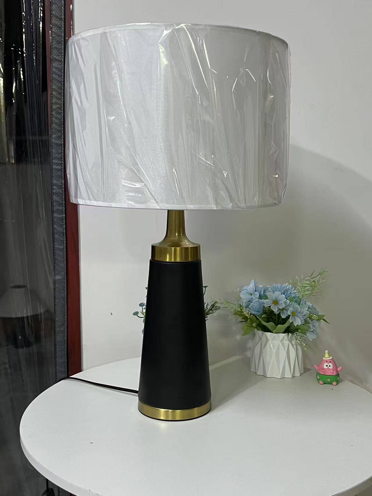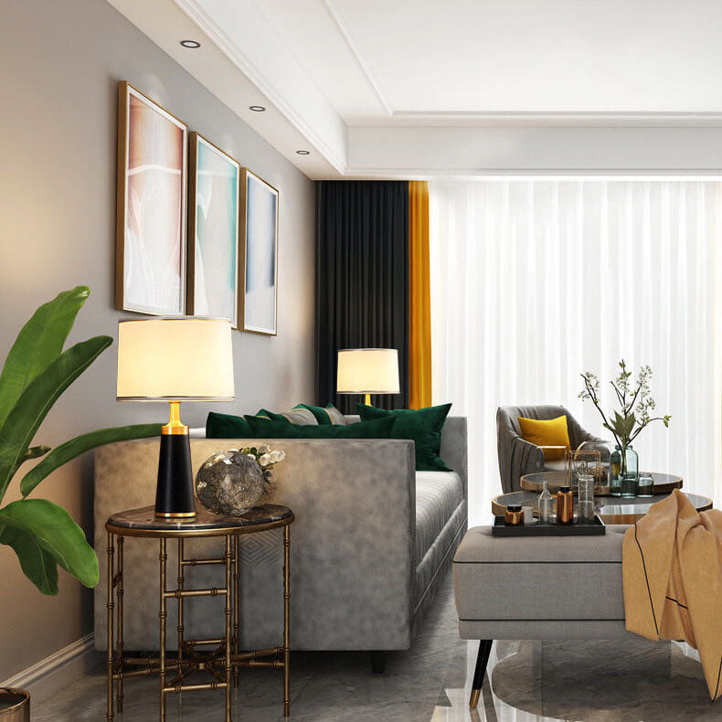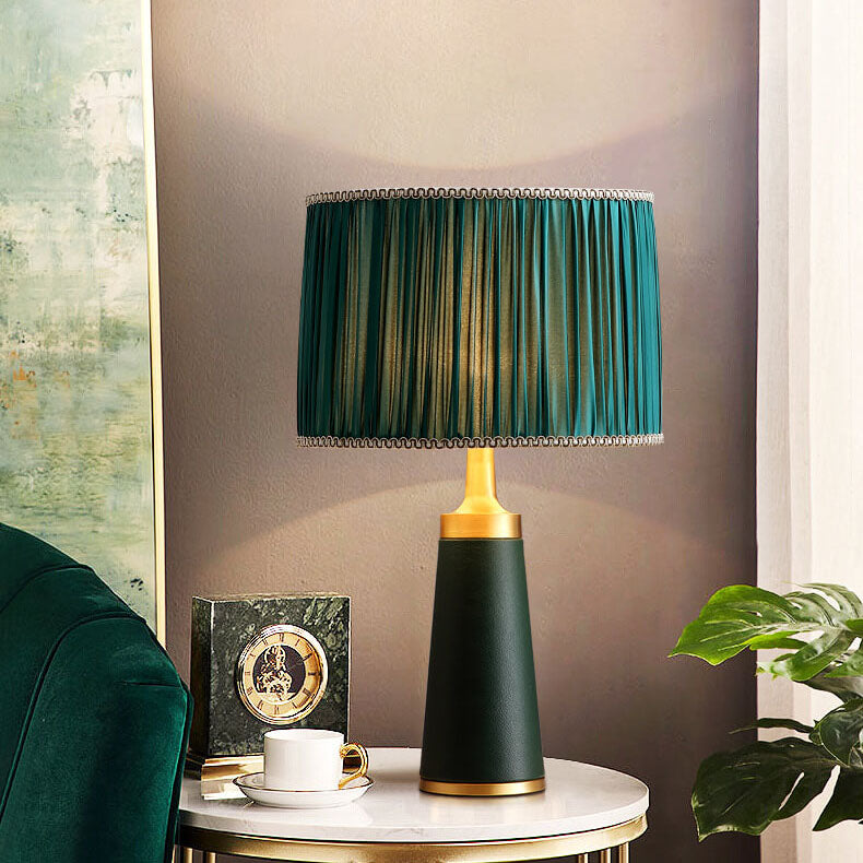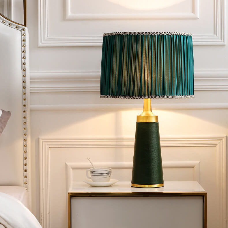 Modern Transitional Fabric Cylinder Shade Leather Base 1-Light Table Lamp For Study