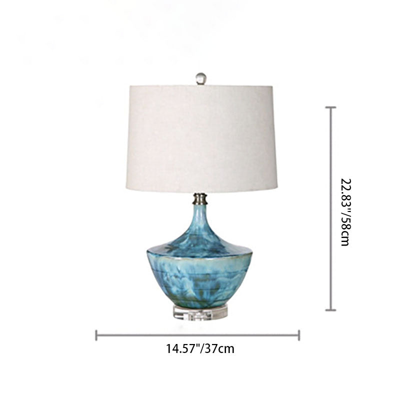 Modern Transitional Fabric Shade Ceramic Jar Base 1-Light Table Lamp For Study