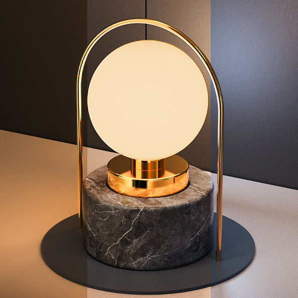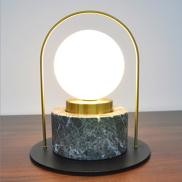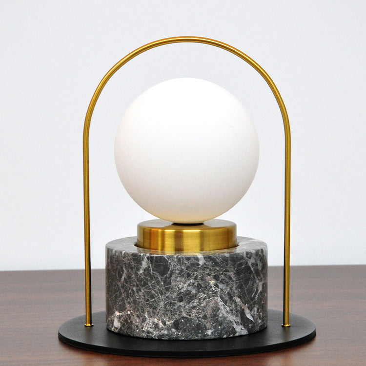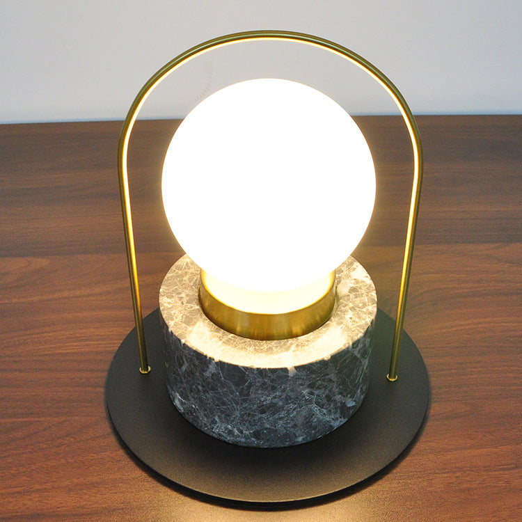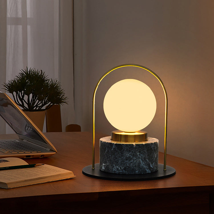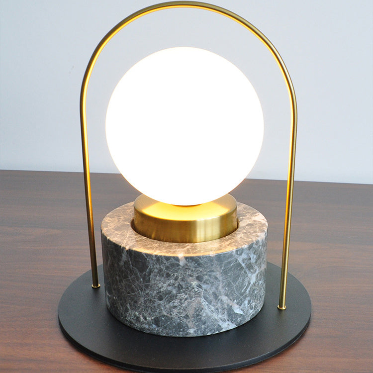 Modern Transitional Marble Glass Metal Ball Oval Handle 1-Light Table Lamp For Study
