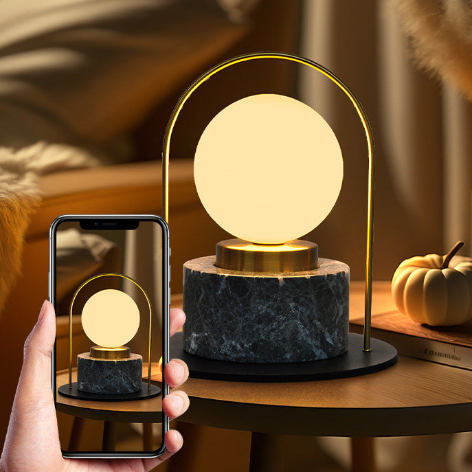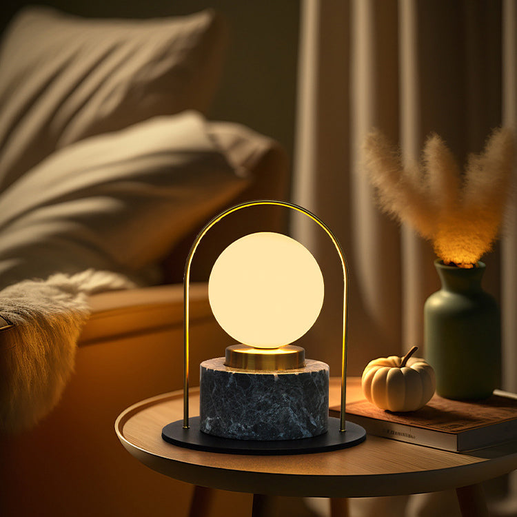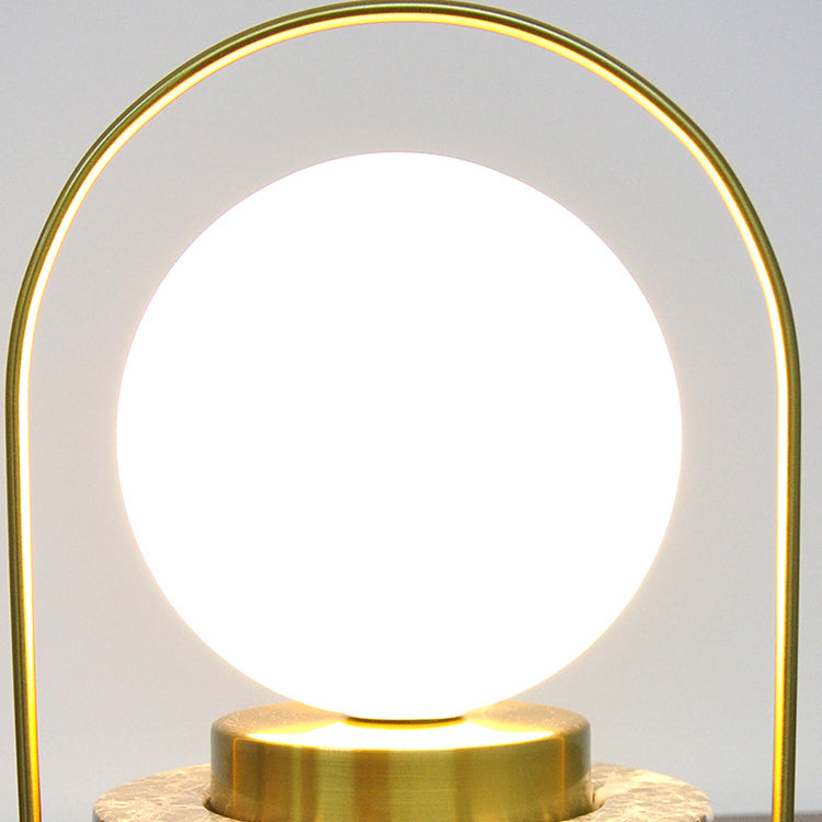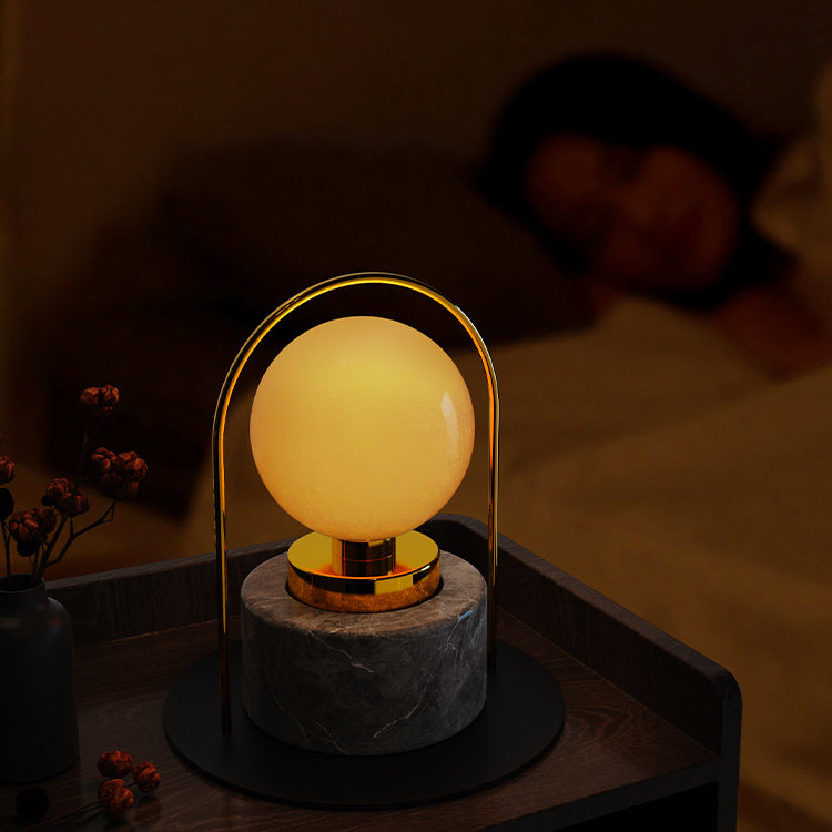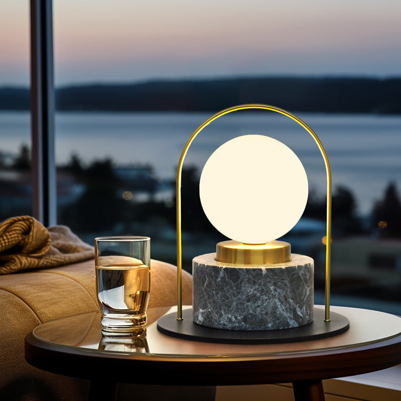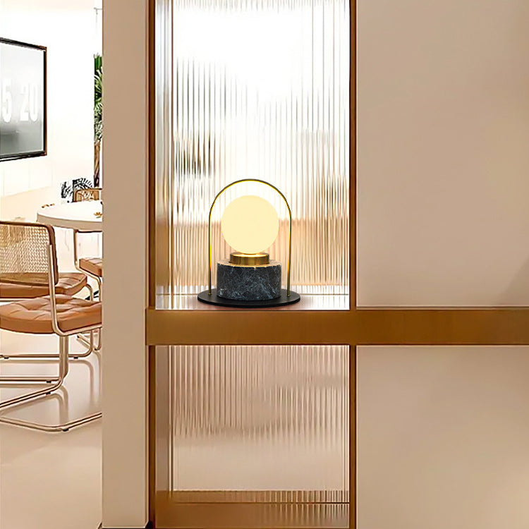 Modern Transitional Marble Glass Metal Ball Oval Handle 1-Light Table Lamp For Study